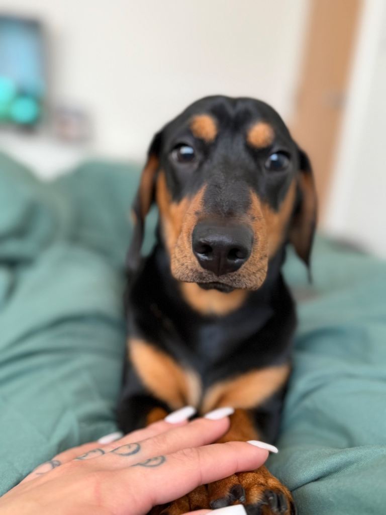 She is 12 weeks old, female, and black & tan in colour. She has a playful, affectionate nature and absolutely loves cuddles, as well as spending time exploring and playing.
