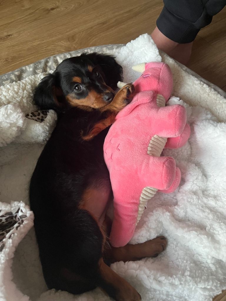 Beautiful miniature longhaired dachshund puppy looking for a loving new home.