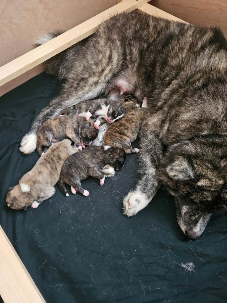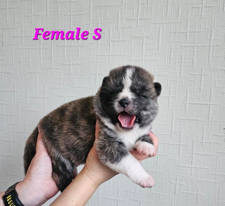 Brindle Japanese Akitas available. Both parents are imported and registered with the Royal Kennel Club. Puppies will come with: