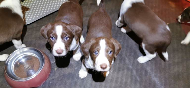 All lovely pups growing strong, all off mam now and eating raw good around other dogs as we have others, message for more information. Thanks.