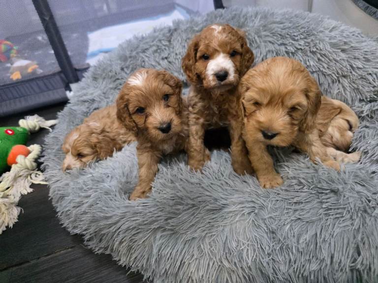 Gorgeous Red/ apricot F2 Cockapoo puppies for sale My nina has had a gorgeous first little of 5 healthy pups! 3 girls and 2 boys. Ready to leave from the 9th of January Pups will be brought up in our family home amongst our 2 children so will be very much used to everyday noise in the house and handled often🥰 Nina is our much loved family pet and has the most amazing temperment and is the most loving playful dog as you will see when you meet her ❤️ 🐕 Puppies will be weaned and fed on lilys kitchen. Each puppy will be wormed from 2 weeks old, have there first vaccination, microchipped and health checked by the vet. Born 7/11/25 Ready to leave 9th jan A £200 deposit upon viewing will secure your new family member. Please contact me for any questions.