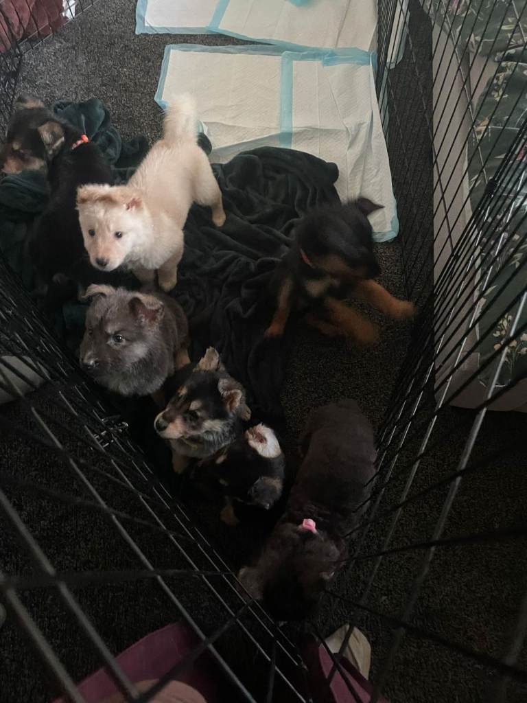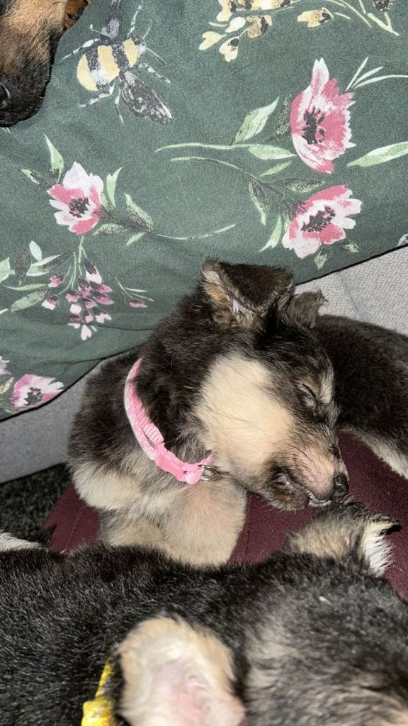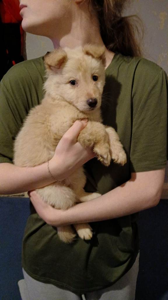 Pups are ready to leave. We have 4 pups left is 1 grey and tan- girl, 1 cream/white- girl 1 black and tan 1 girl. Pics was taken just after puppies had baths. All have lovely temperaments.