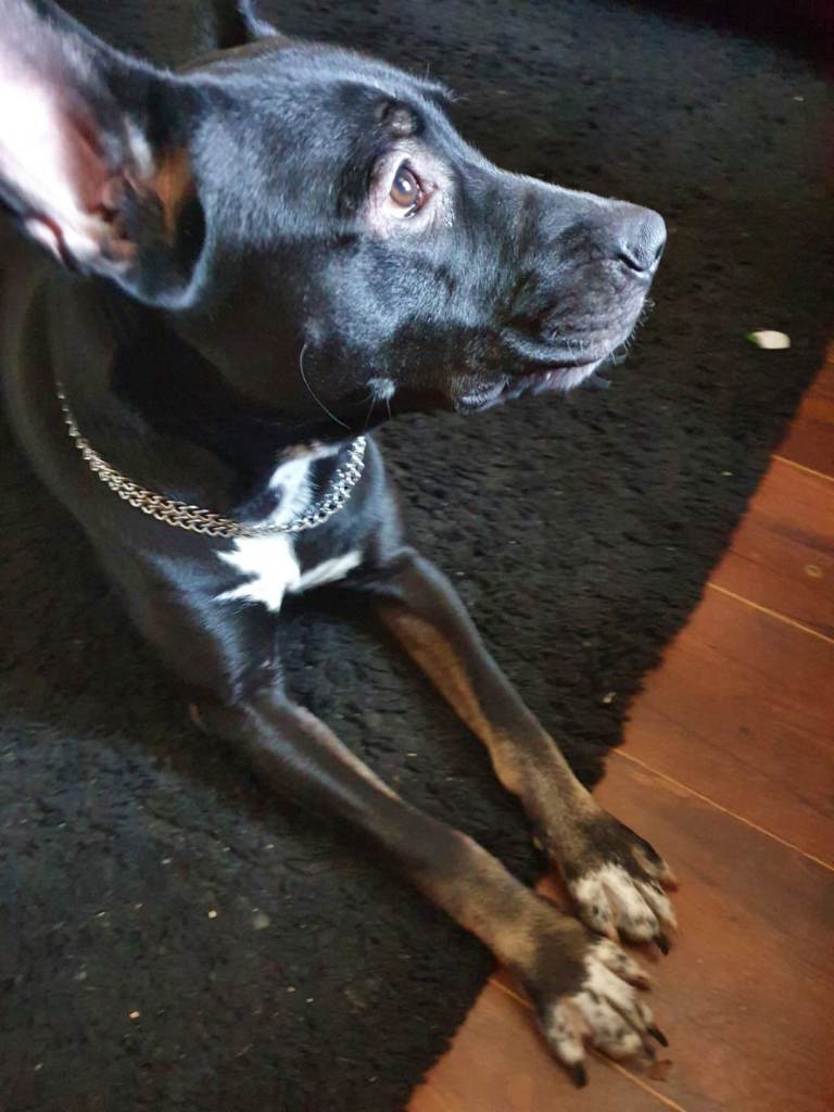 American bull dog cross needs a forever home likes his walks on a lead hes a very a loving dog he must have a garden and caring new owner is a must. Please contact me for more information. Dunstable.