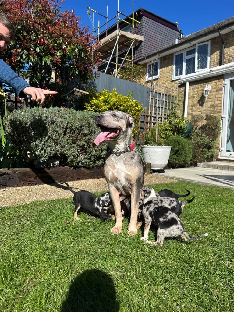 Beautiful litter of 9 Australian Kelpie cross Staffordshire Bull Terrier puppies looking for their forever homes. Mum is a large Staffordshire Bull Terrier and dad is an Australian Kelpie. Both are friendly, loyal, great with people and have great temperaments