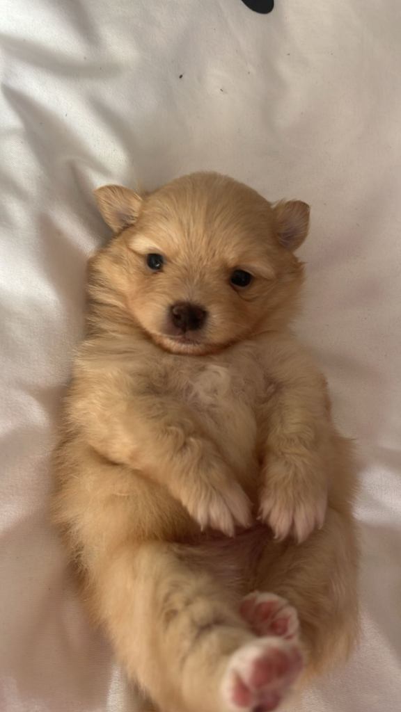 Hi my little girl had 3 baby Pomeranian one boy black with chocolate markings one boy light cream one girl cream there ready 24th may with dwkc reg first injection with wormed and flead to date mom and dad can be seen there my family pets the babies are brought up around children and every day to day noises viewings are welcome prices £2000 black boy cream boy £1100 cream girl £1500