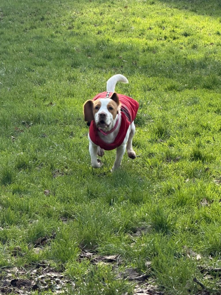 He is a very well-behaved, calm, and gentle dog with a lovely temperament. He enjoys spending time with people and would make a loyal and loving companion.