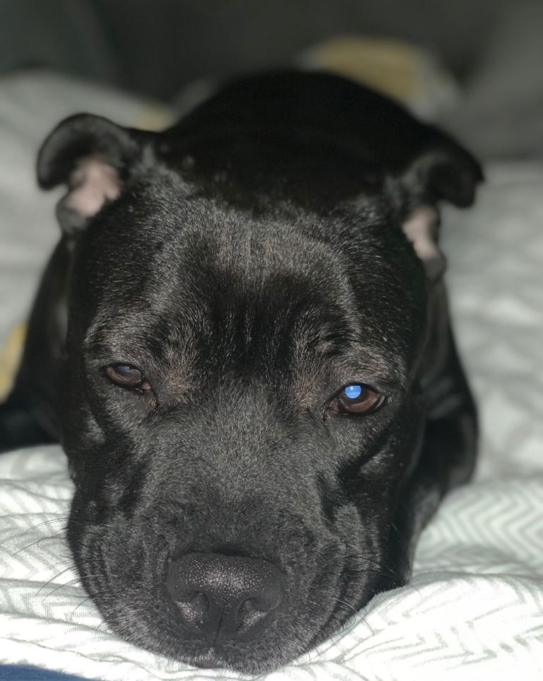 Coco is a 7 year old black staffy, unfortunately her owner passed away a few months ago unexpectedly and I took her in to help on a temporary basis as I work long hours and already have 2 dogs of my own. She is very friendly, loves attention and loves walkies! She acts just like a pup very active. She is well trained, has never messed in the house while being with me for the past 3 months.