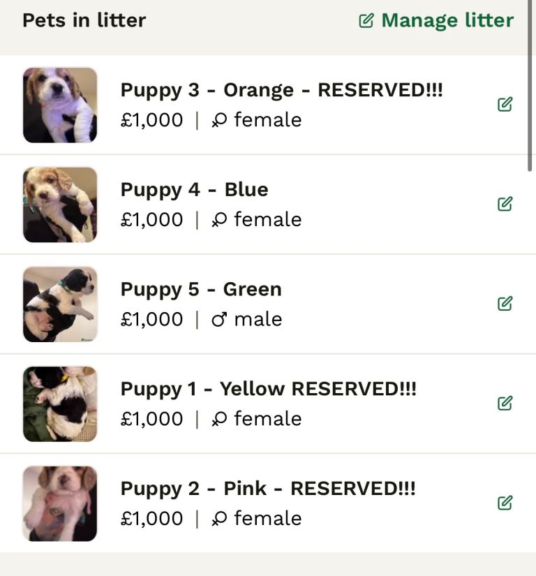 Viewings are very welcome — please message if you’d like to come and meet them. I’m happy to send regular photos and videos so you can watch your new best friend grow 💕