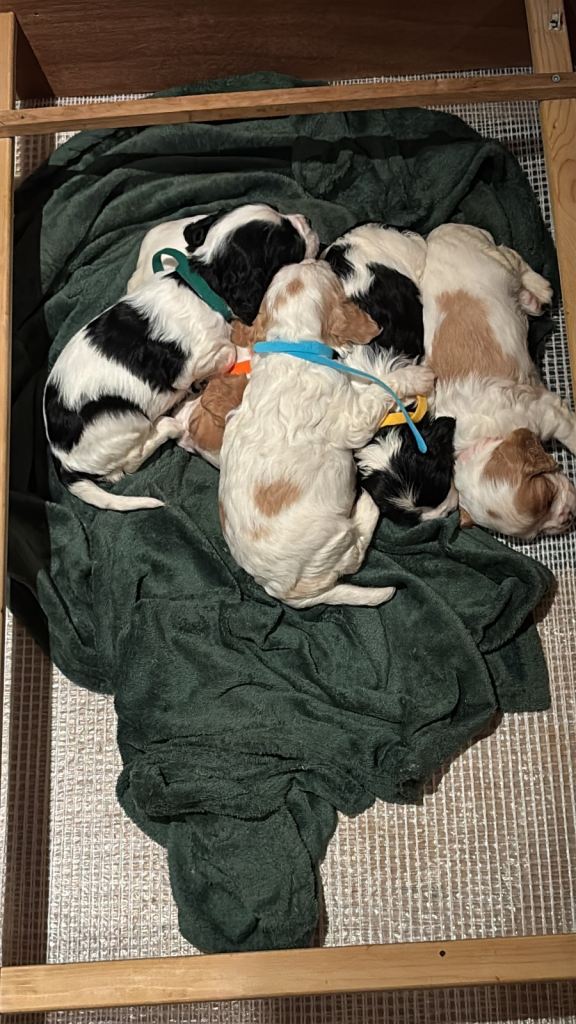 The puppies have thrived from day one and are now confident, playful, and full of personality, with constantly wagging tails. They’ve been raised in our busy family home and are used to everyday household noises, other dogs, and cats. They love attention and cuddles, and their little characters are really starting to shine through.