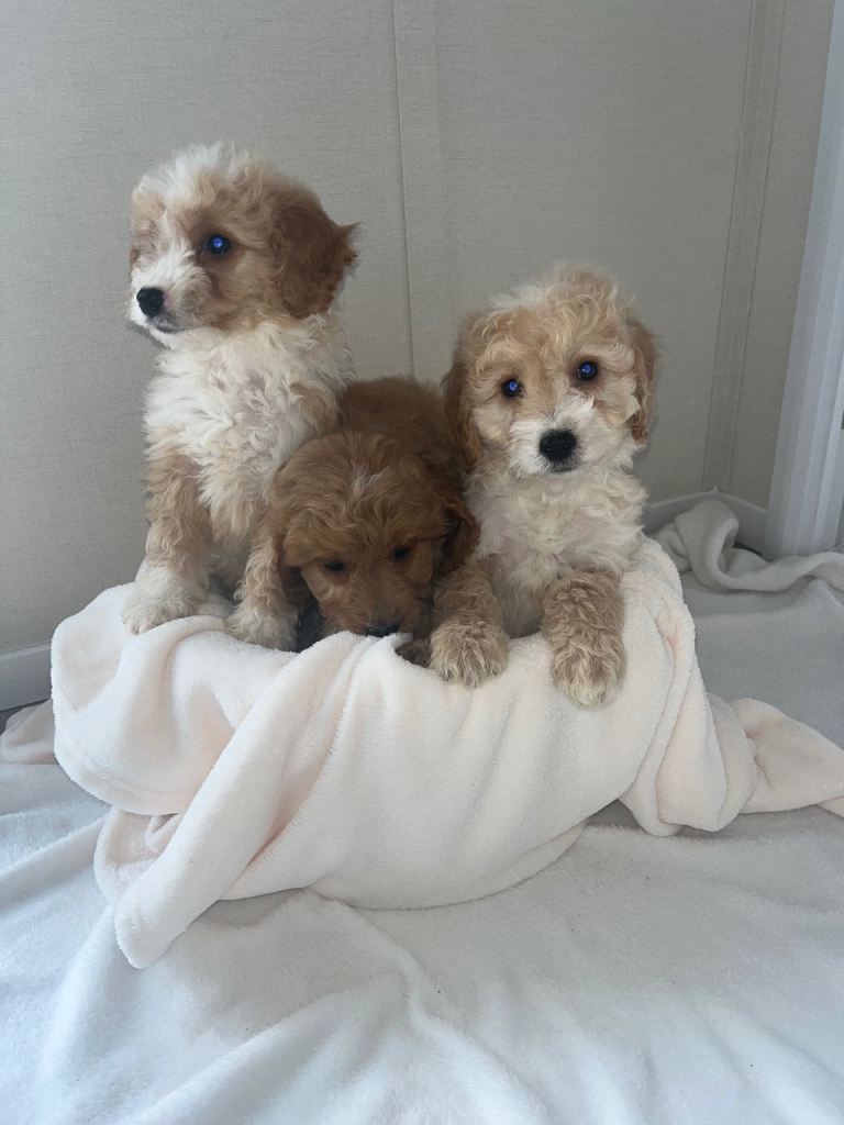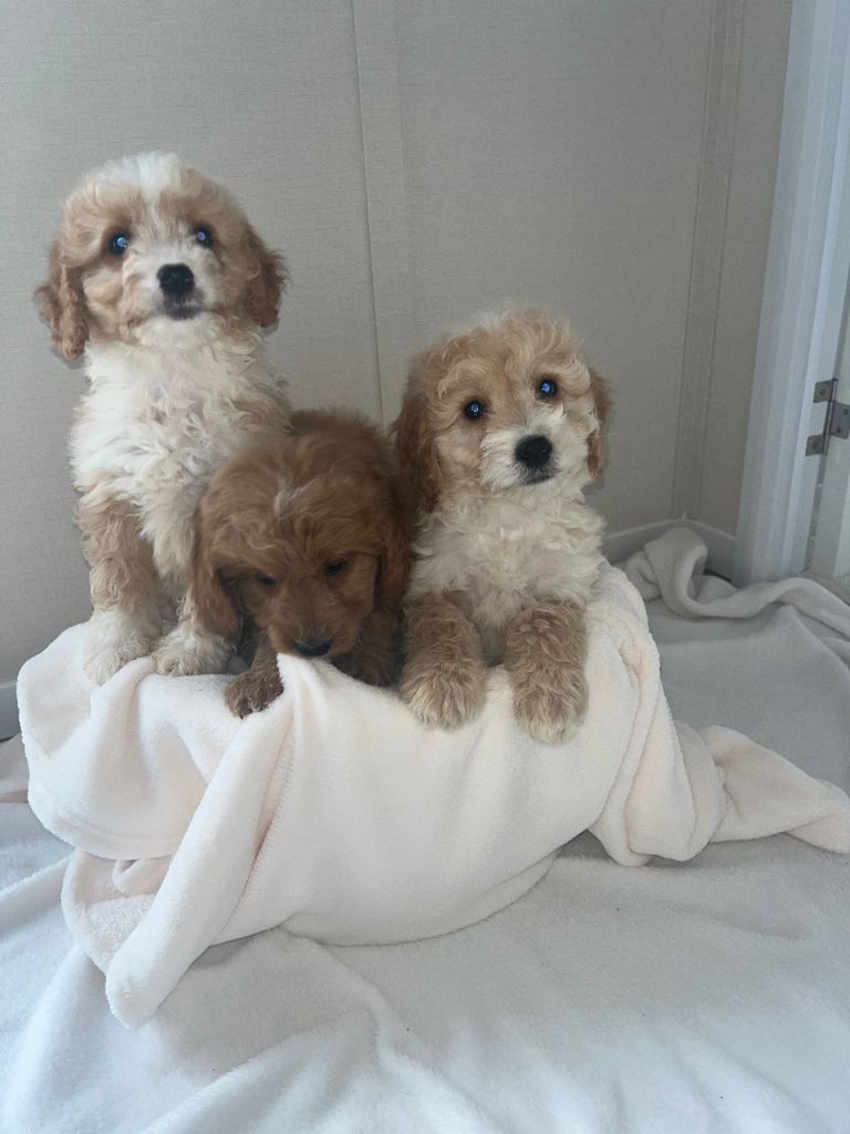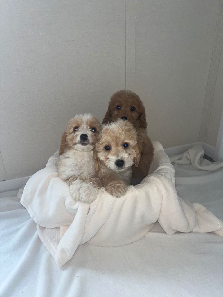 I have a beautiful litter of Cockerpoo puppies for sale both genders available. Mum is a loving family pet so is dad both parents can be seen when viewing mum is a red cocker spaniel dad is a pra clear kc registered apricot poodle. Puppies have been handled since’s birth been around children very kind and playful ready to leave five star homes only puppies have been microchip flea and worm up to date