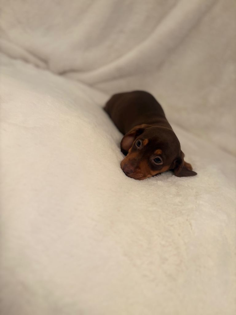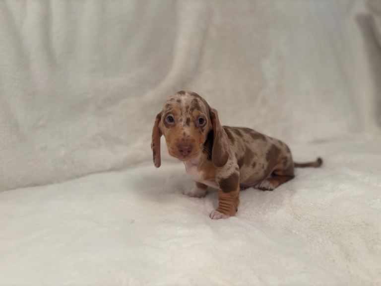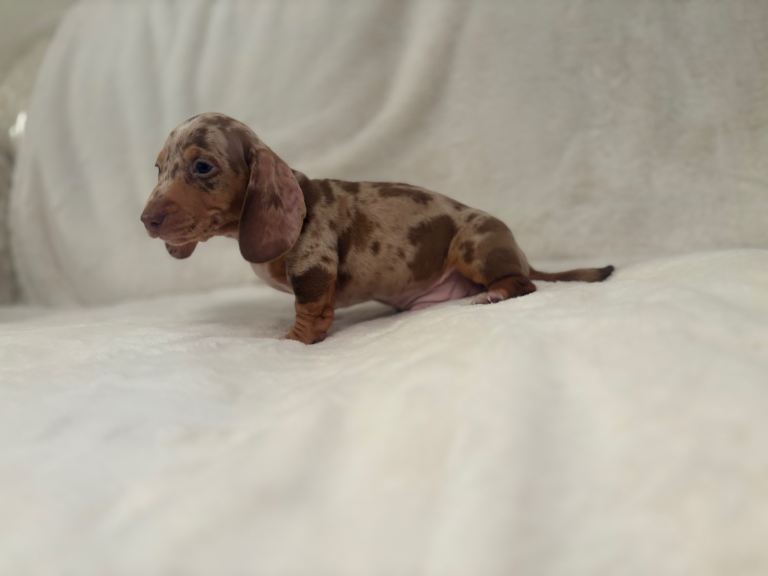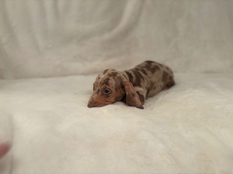 mum is FULLY KC MINIATURE CHOCOLATE DAPPLE DACHSHUND HER KC NAME IS KENXTWEN BEAUTY BLOSSOM granddaughter of CHARLIE CHAPLIN🧬she comes from champion lines she carries blue and lilac and dapple