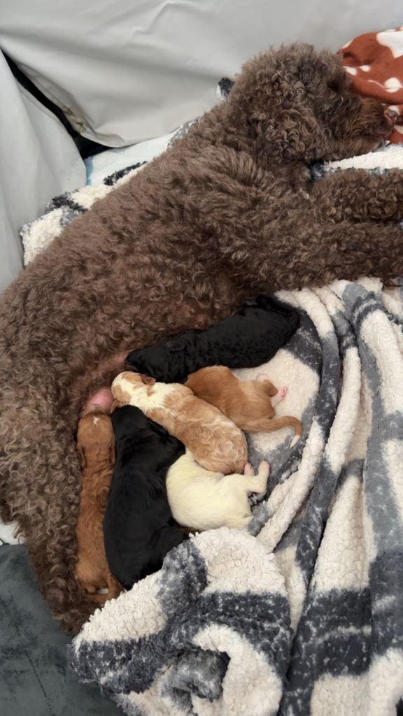 My beautiful girl Coco has had a litter of stunning F2 cockapoo puppies, 4 girls and 2 boys.