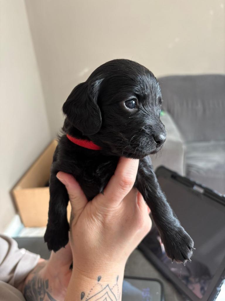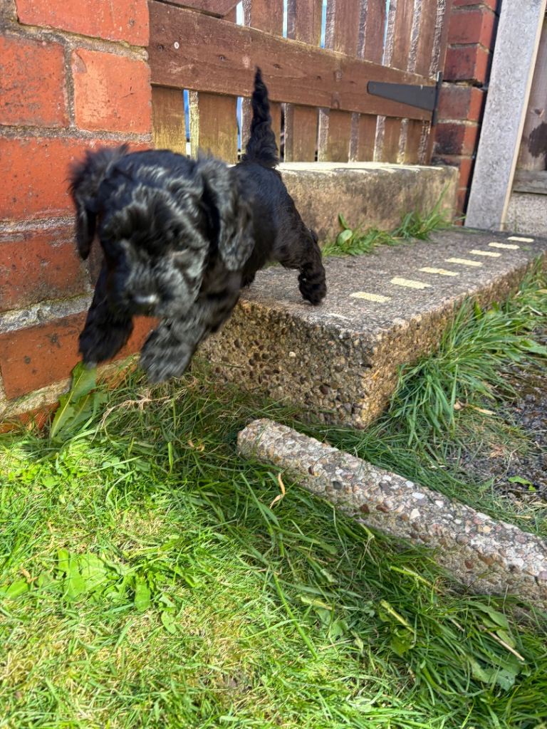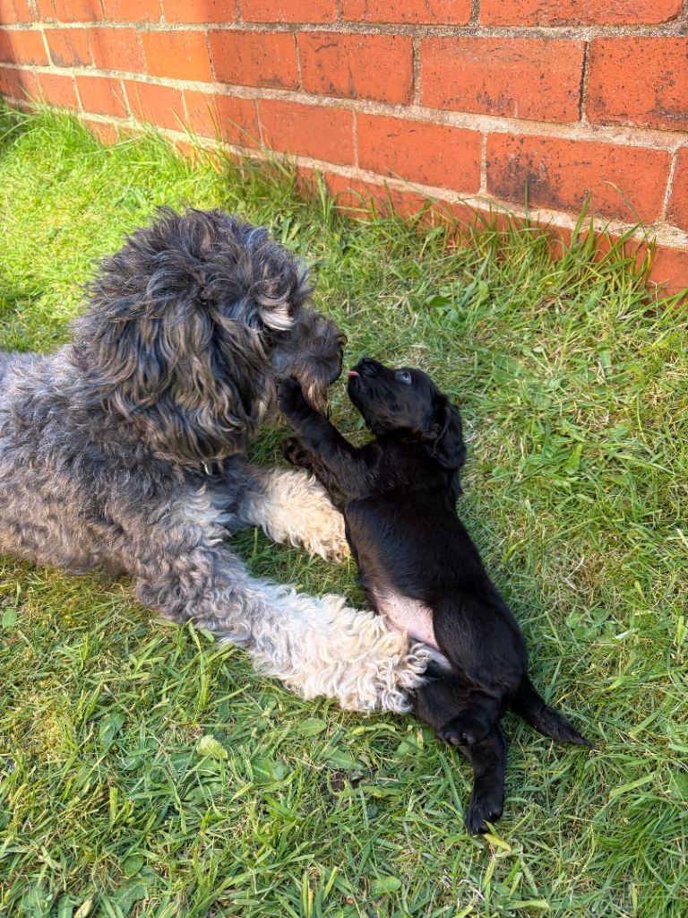 Black/black and white pups. Can be viewed with both Mum and Dad. Will be vet checked, microchipped and have first vaccination before they leave. Ready to leave in 2 weeks. 4 out of 6 pups remaining. 3 boys and 1 girl