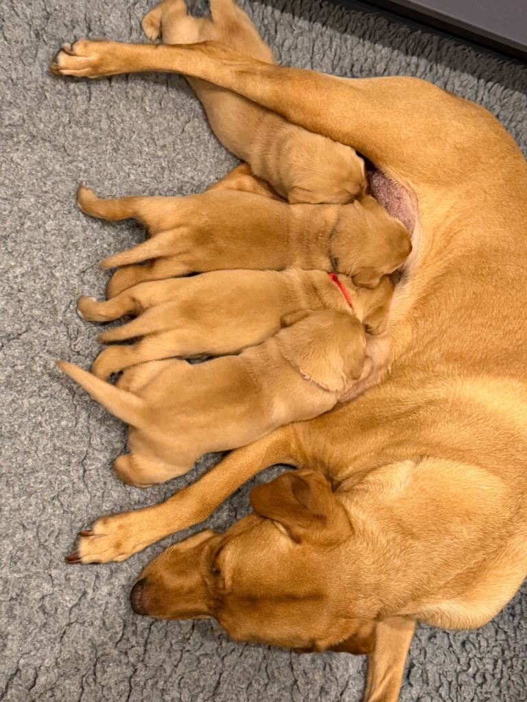 Our gorgeous fox red Labrador puppies are now looking for their forever homes. These puppies have been lovingly raised in our family home and are part of everyday household life, meaning they are well socialised, confident, and used to normal home noises and routines.