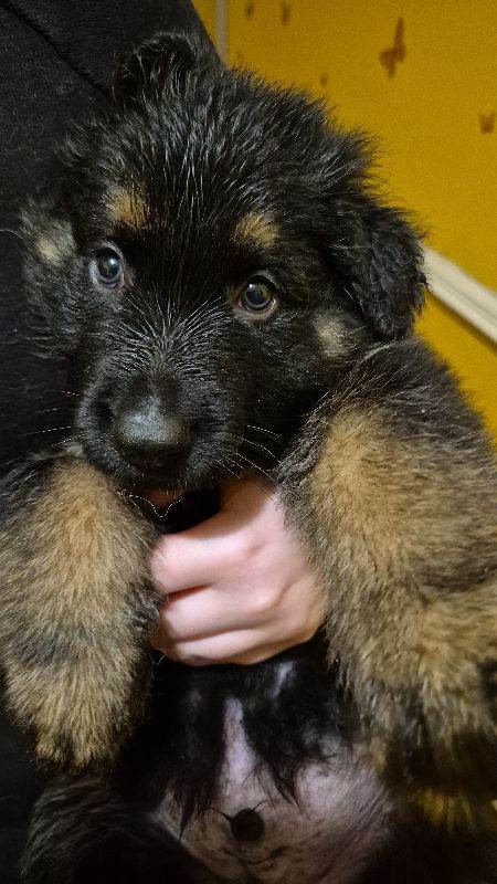 Black and tan long haired german sheppard . Both parents available to see . Mum and dad are both full german sheppard . He is a lovely natured young man . He would be a wonderful pet for the right right family . He is good with all other pets and children. He has lived with us since birth and has been brought up with Yorkie terriers . He has also spent time with my grandchildren who are both special needs . My daughter was going to train him to be a service dog for my grandchildren but I'll health stopped that so he is up for sale .