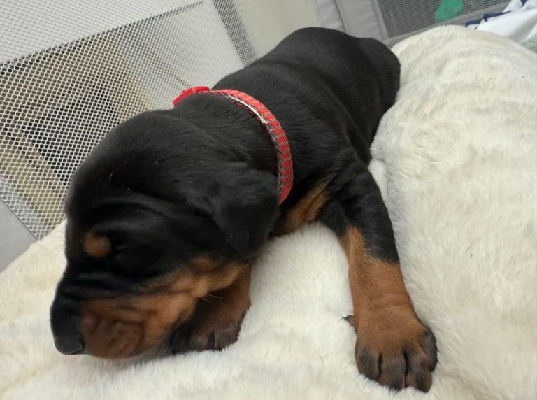 The puppies will leave vet checked, wormed with panacur at 2, 4, 6 and 8 weeks, microchipped, vaccinated with the L4 vaccine and a scent blanket and food. They will be 8 weeks and ready to go home on February 28th.