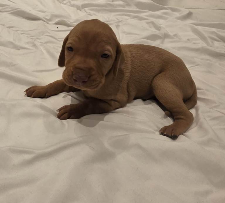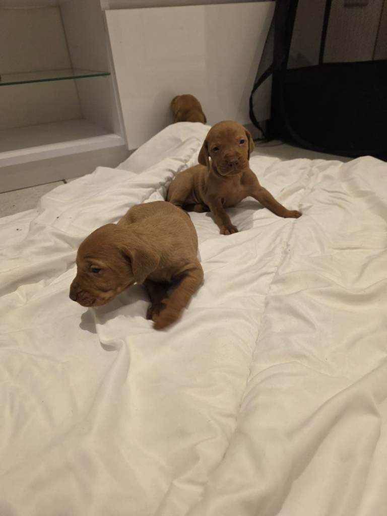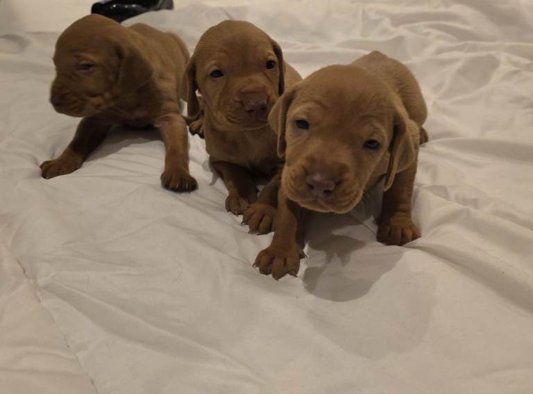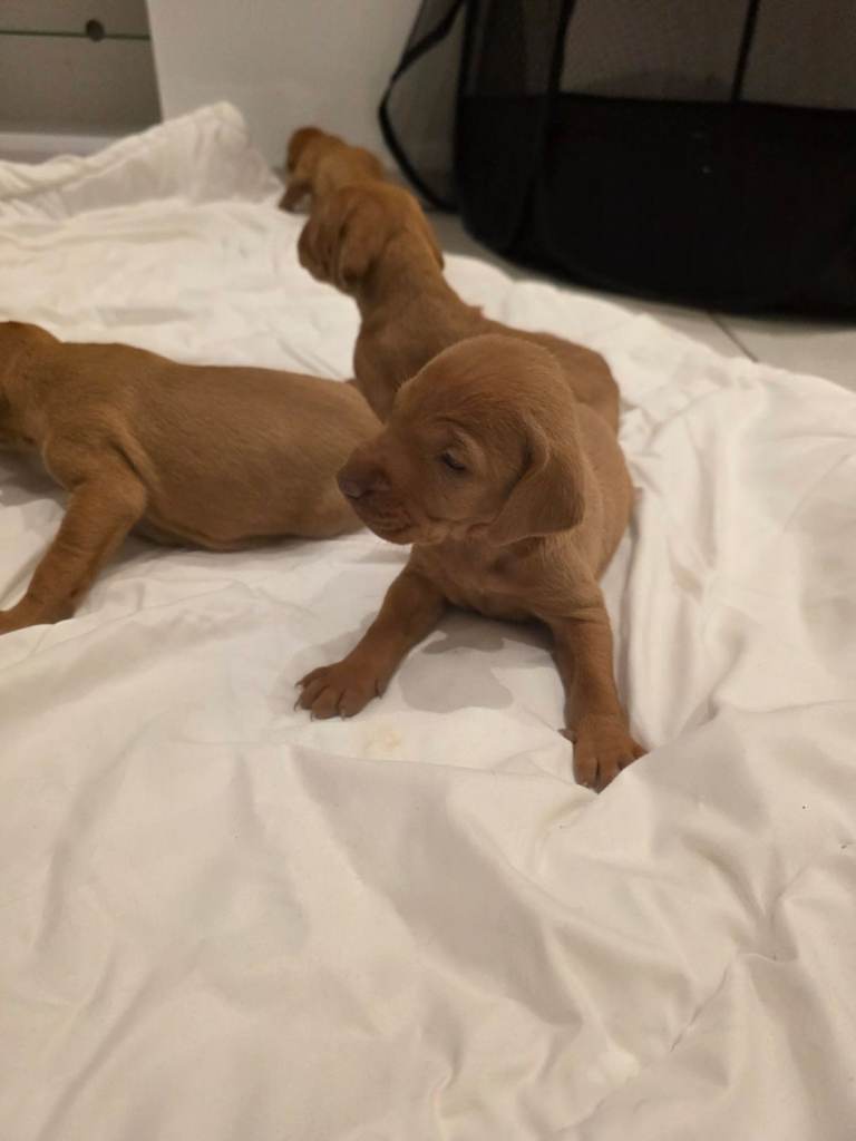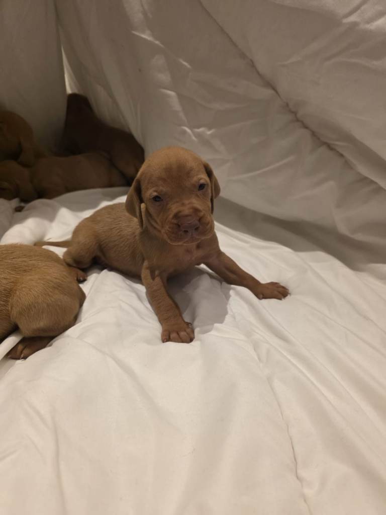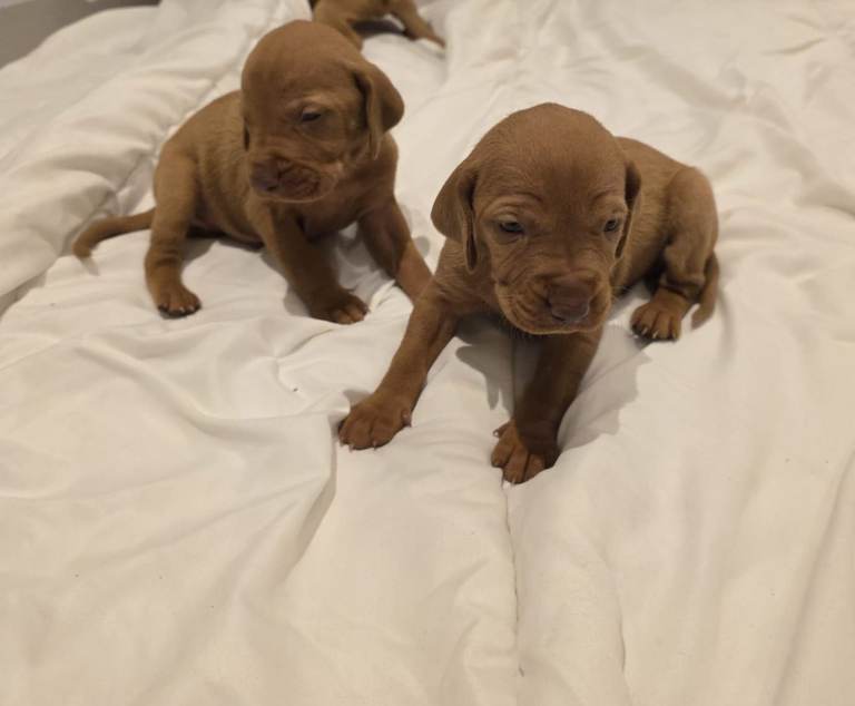 These puppies are Kennel Club (KC) registered, ensuring they come from a verified lineage. Known as "velcro dogs," Vizslas are incredibly loyal, friendly, and active companions who thrive on human affection.
