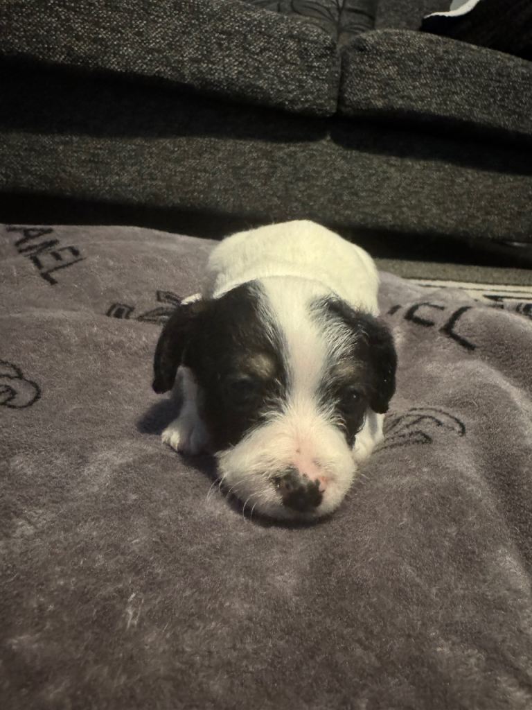 Here I have 2 beautiful jackopoo pups 1 girl and 1 boy out of a litter of 5 looking for there forever homes . Mum and dad are both well loved family pets and can be seen both little pups will be microchipped vet checked flead and wormed and leave with a puppie pack containing puppy pads food toy and a blanket and all paperwork from the vets. Pupdates of puppies pictures and videos sent until your pup is ready to leave for there forever homes and vists are more than welcome and can be arranged . Any more info wanted pls email call or message at any time . A deposit(non refundable ) will secure your pup until pup is ready for there new home . Many thanks for reading