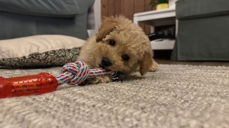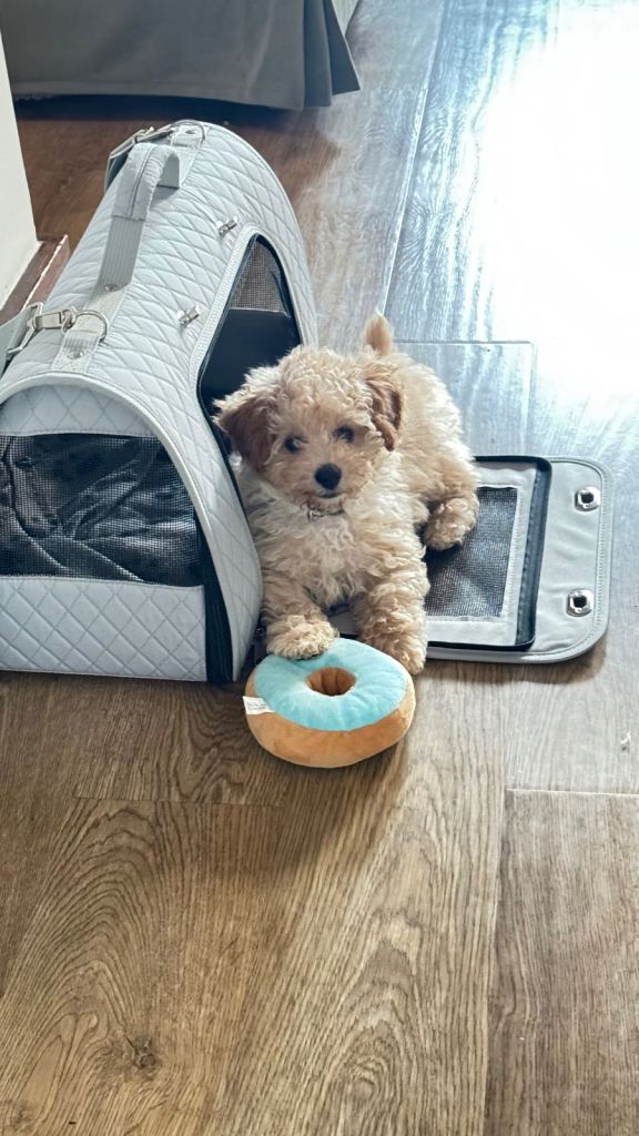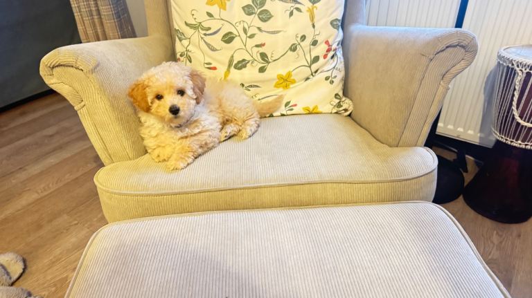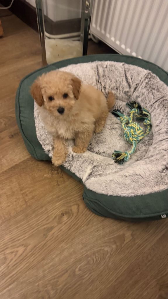 We are sadly looking to rehome our adorable male Poochon puppy (mum is a Bichon Frise, dad is a Toy Poodle).