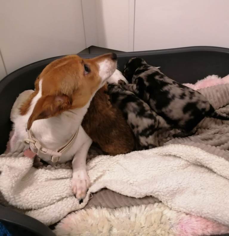 Mum is a Full jack Russell with a very sweet and kind nature. This is her first litter and she’s been a fantastic mum to them all.