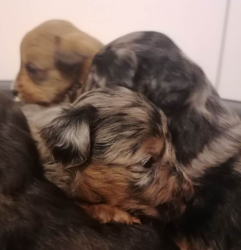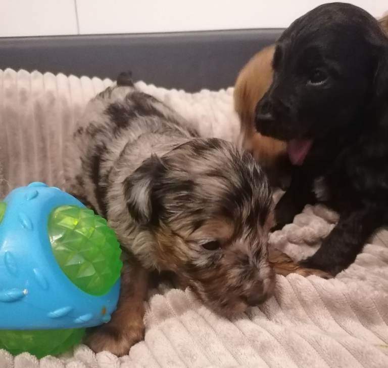 These puppies are happy, fit, and healthy; they have been well socialised and love playing and exploring and are all used to the noises of a busy home.