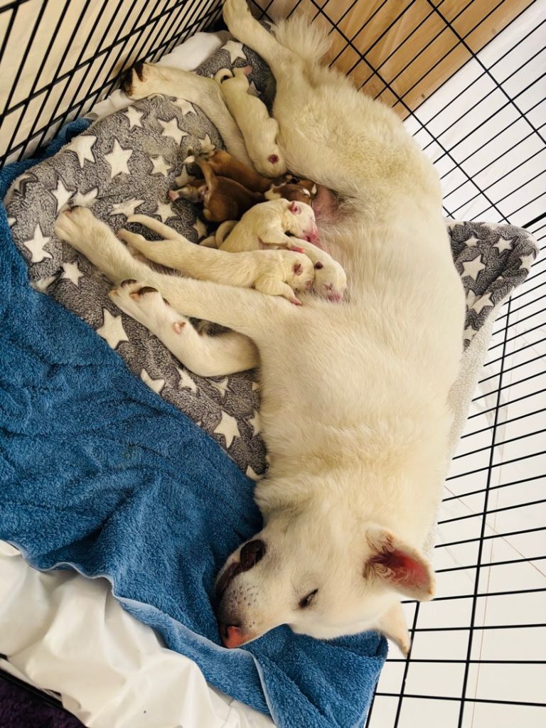 We’re NOT breeders and our dogs are family, treated with the same love and respect. This is their 1st and ONLY batch of puppies as my Archie was too young to be neutered and clearly too frisky so he’s scheduled to be neutered as soon as Vet is available.