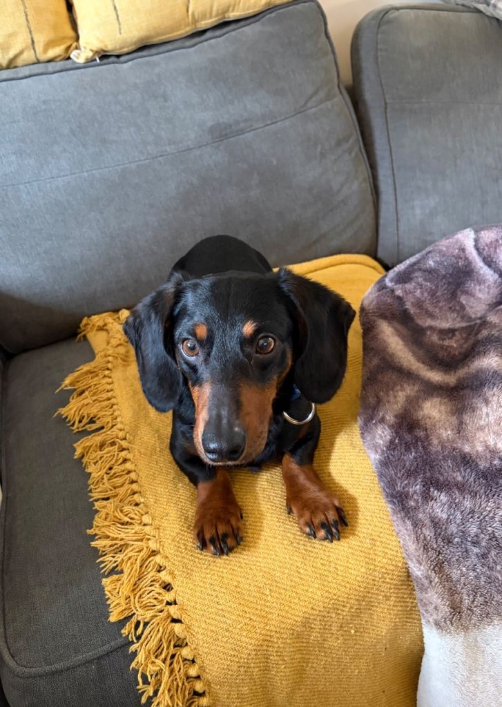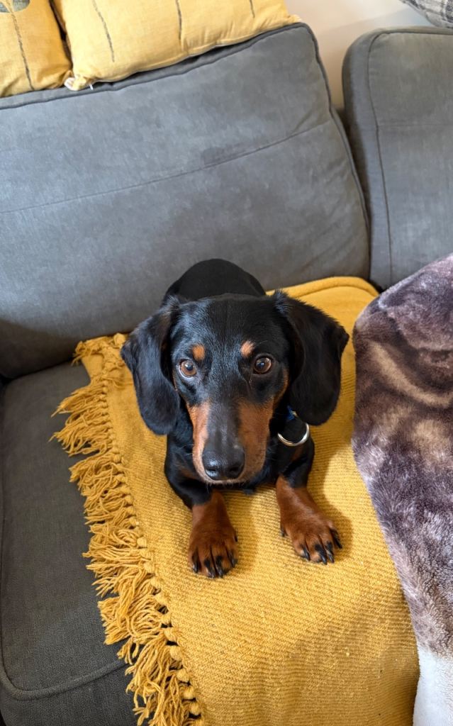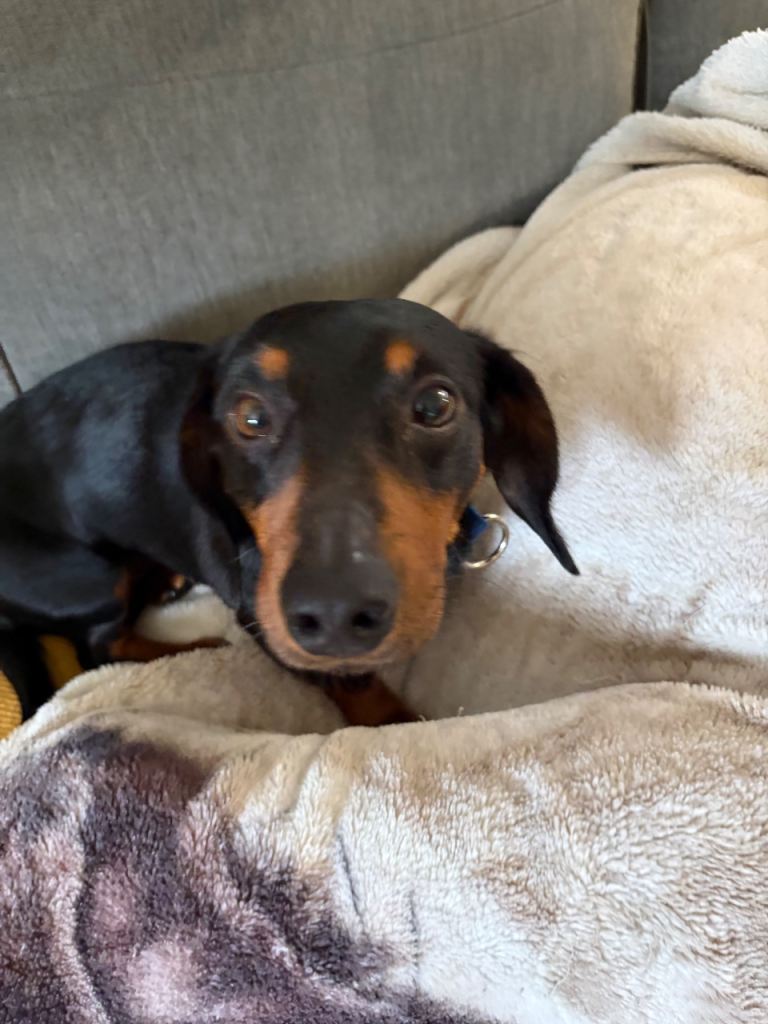 Sausage is a very sweet and affectionate dog who forms strong bonds once he loves you, he really loves you. He’s house trained and generally well behaved at home.