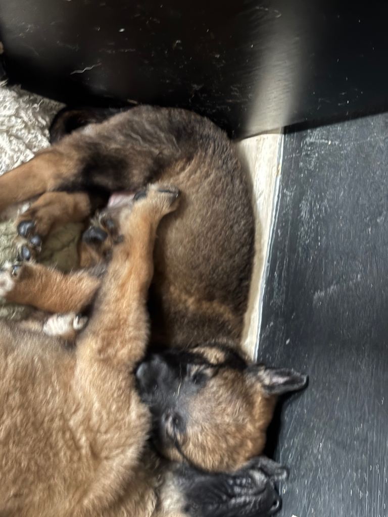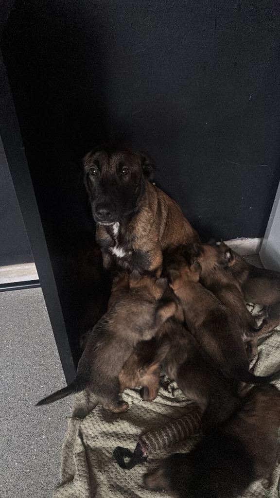 Mom is our Belgian and a very good mum to the pups mum is from a working farm