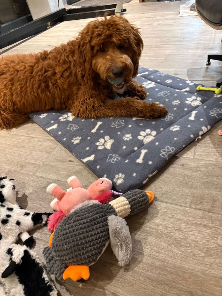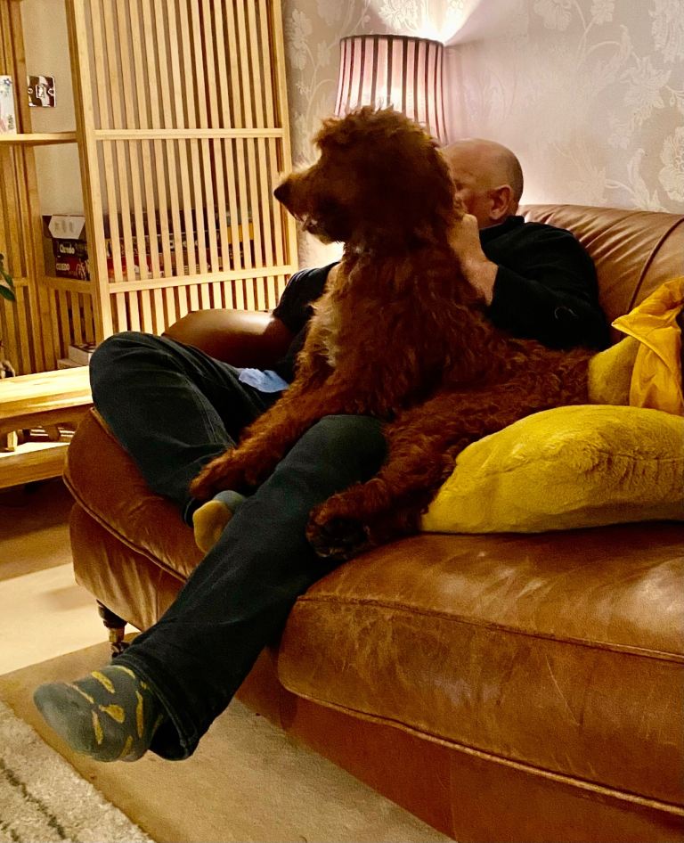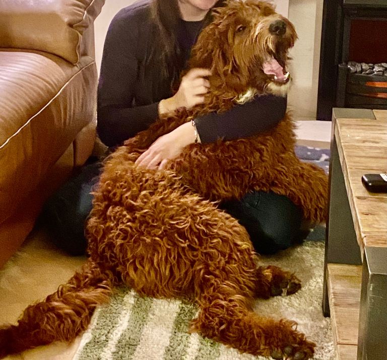 He’s a very large red Cavapoo, just 9 months old, with the sweetest, most playful personality. He absolutely loves people and is great company. He’s still young and full of fun, but also very gentle and affectionate.