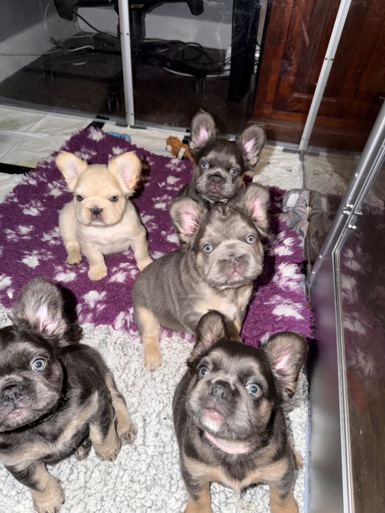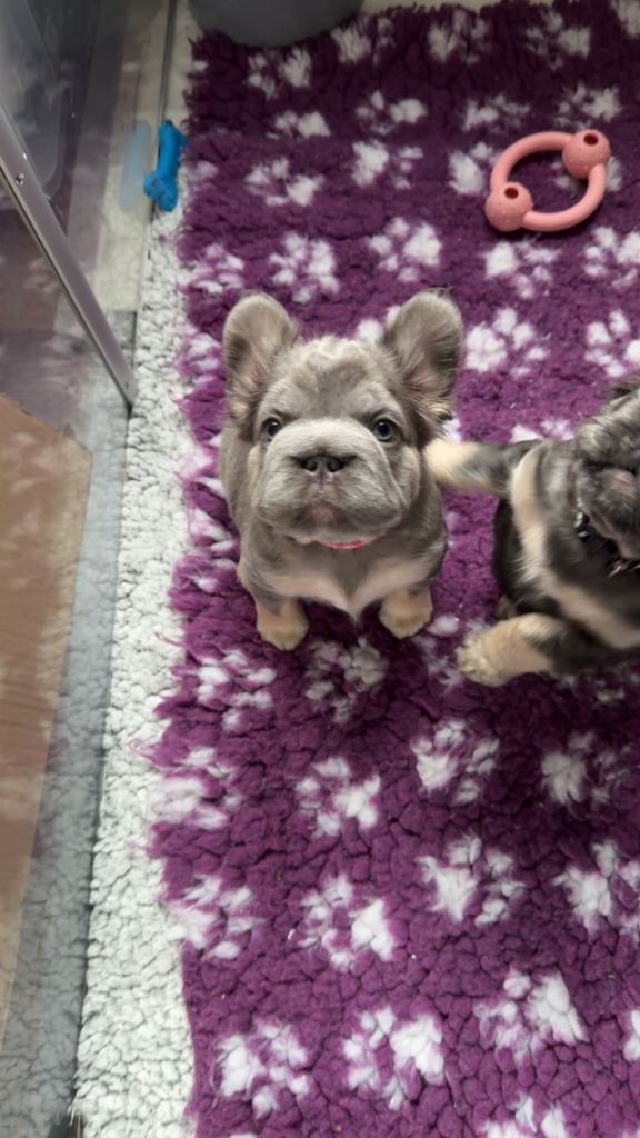 Fluffy frenchies carrying pink