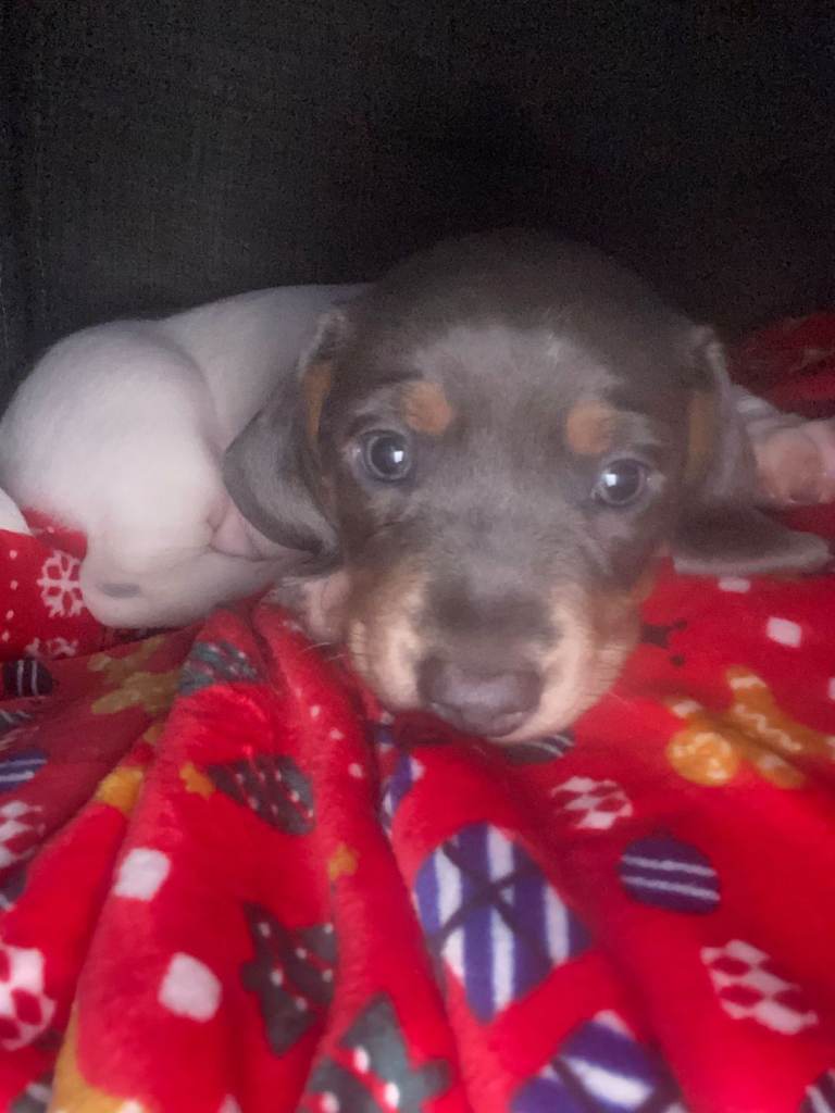 Male, 9 weeks old blue and tan pied daschund ready to find his forever home.
