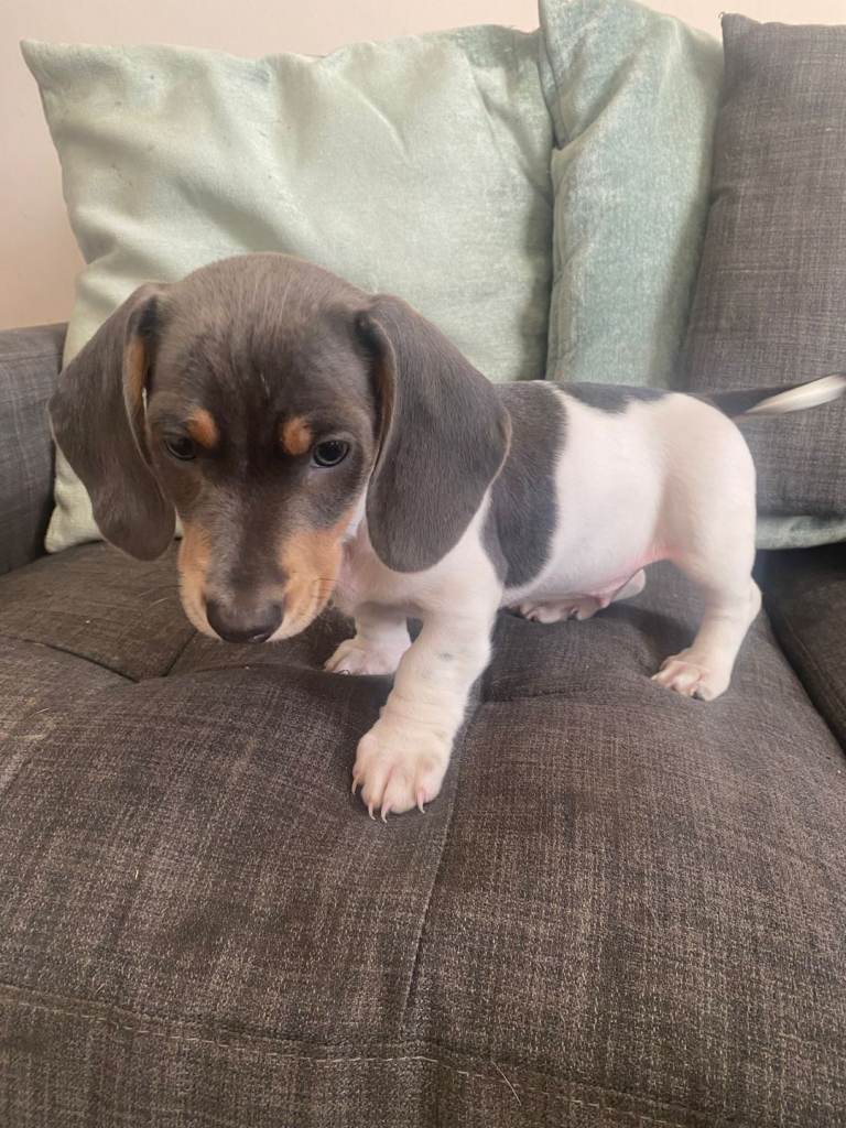 Posting for 8+ yearsBlue and tan pied daschund puppy