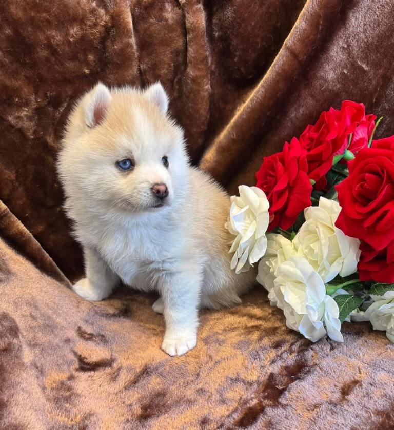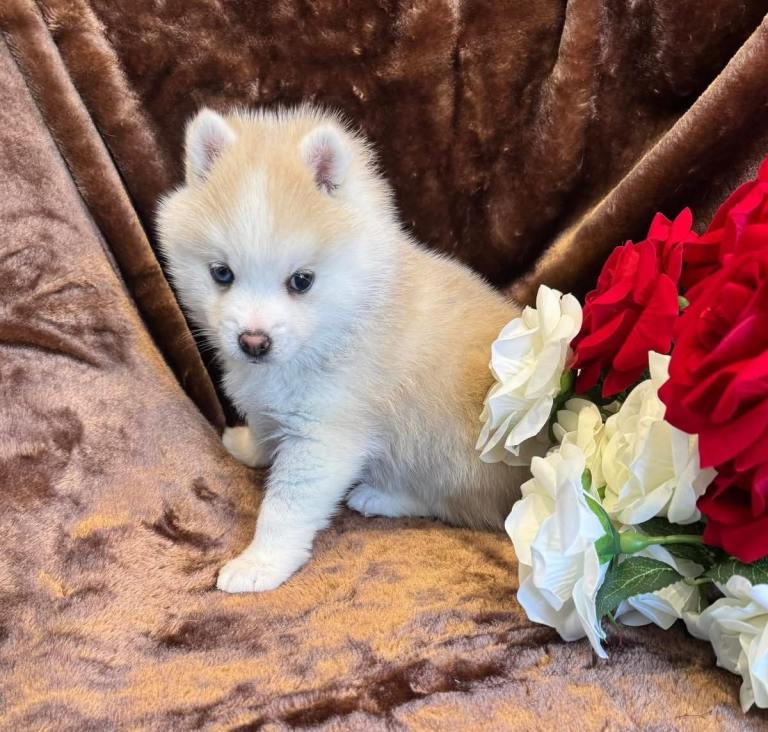 This puppy is incredibly special his mother was bred from two parents imported from California, his sire is from Celtic Star kennels renowned world wide Pomsky breeder also with the best Pomsky lines. He is the cream of the crop when it comes to Pomsky.