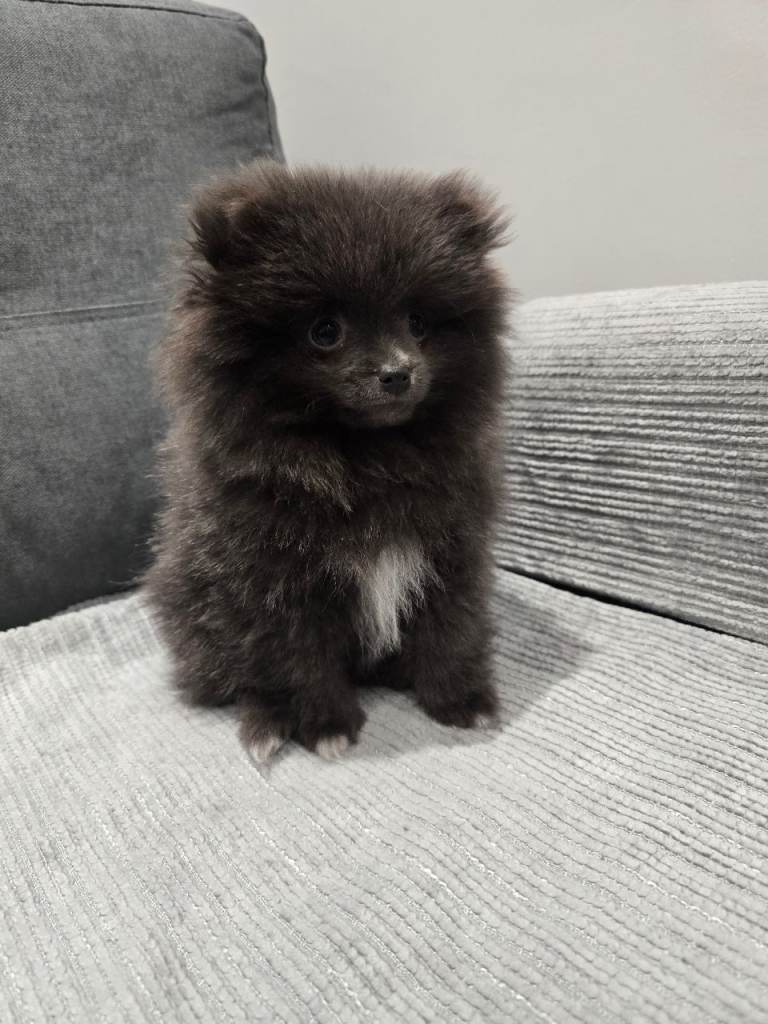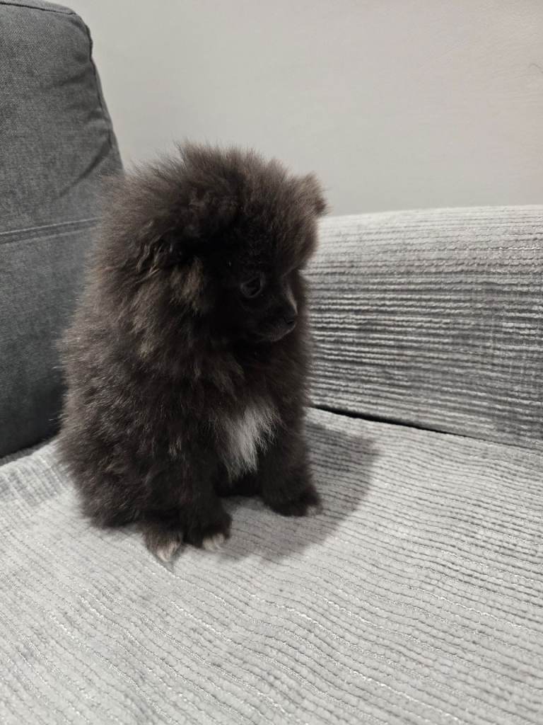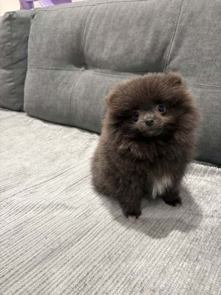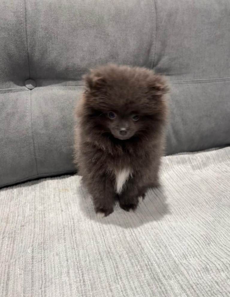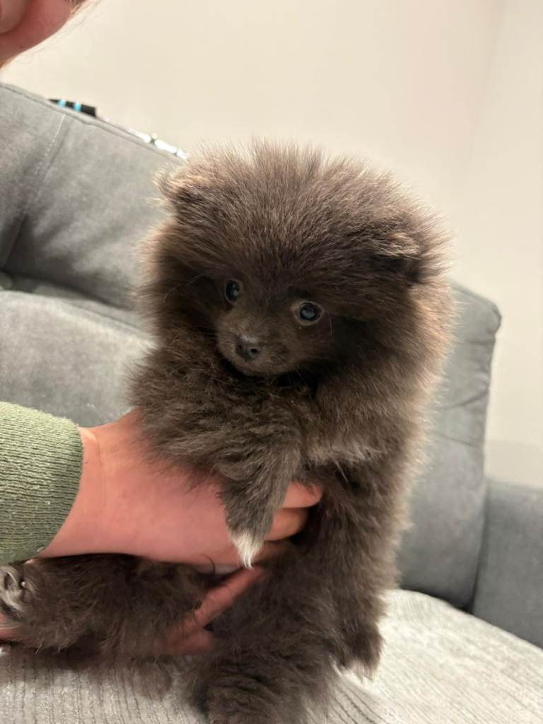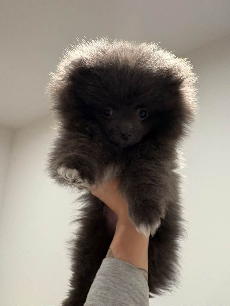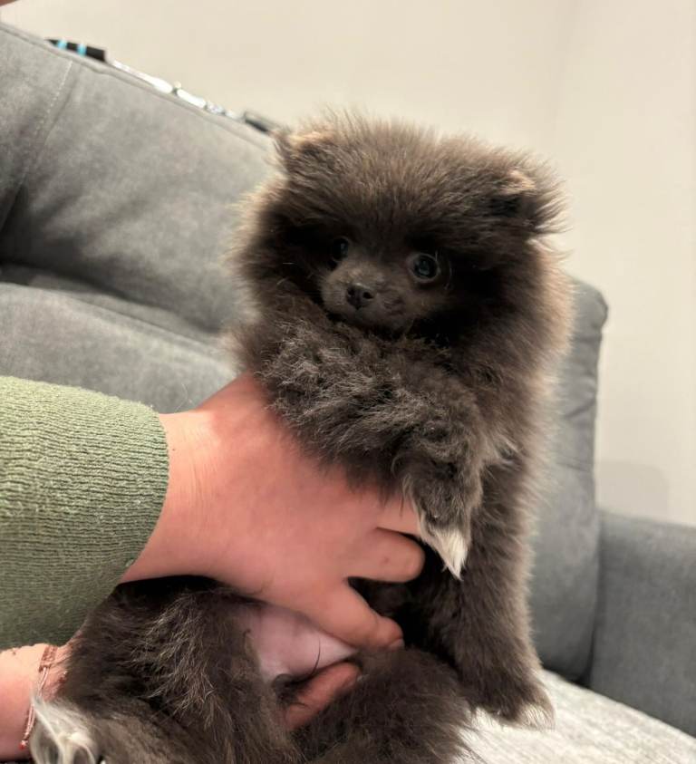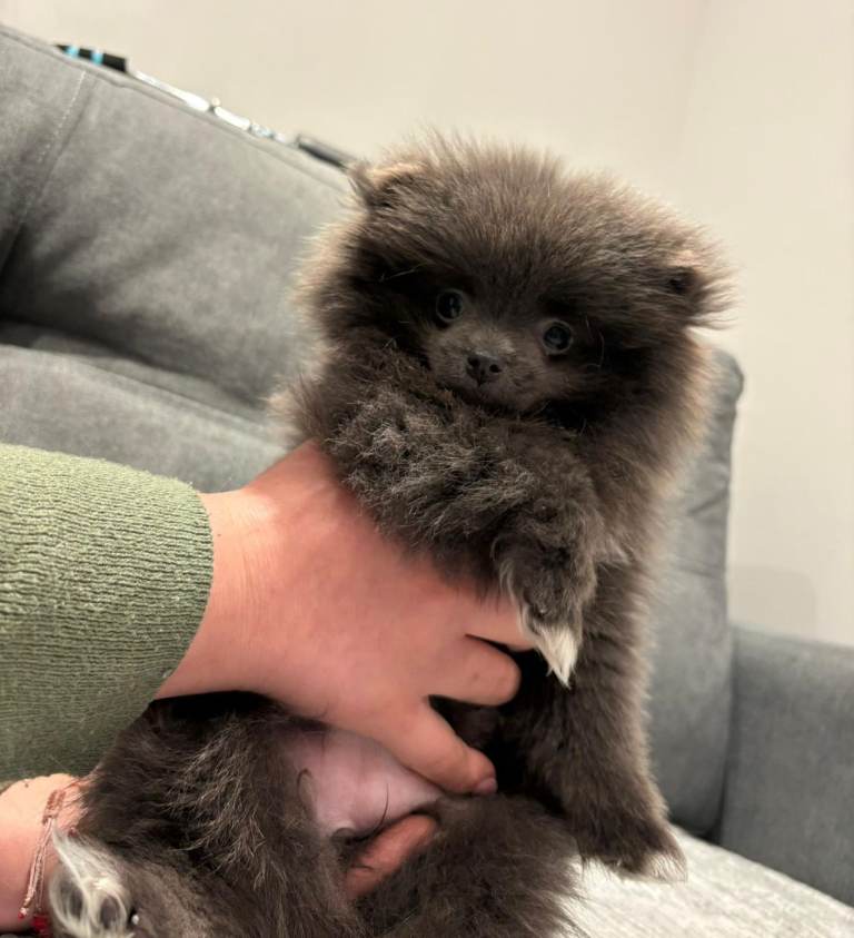 An adorable blue-colored Pomeranian girl is looking for her loving forever family. She’s incredibly playful, full of energy, and absolutely adores attention. Despite her young age, she’s impressively smart — learns quickly and already uses her puppy pad with confidence.