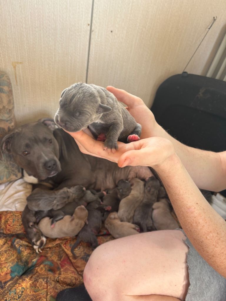 Blue Staffordshire bull terrier puppies 6 boys 5 girls wanting to go to a loving home £750 each £200 deposit