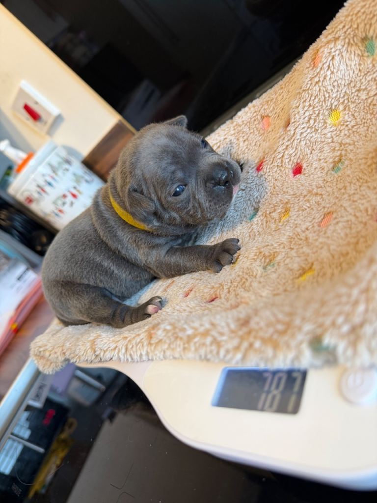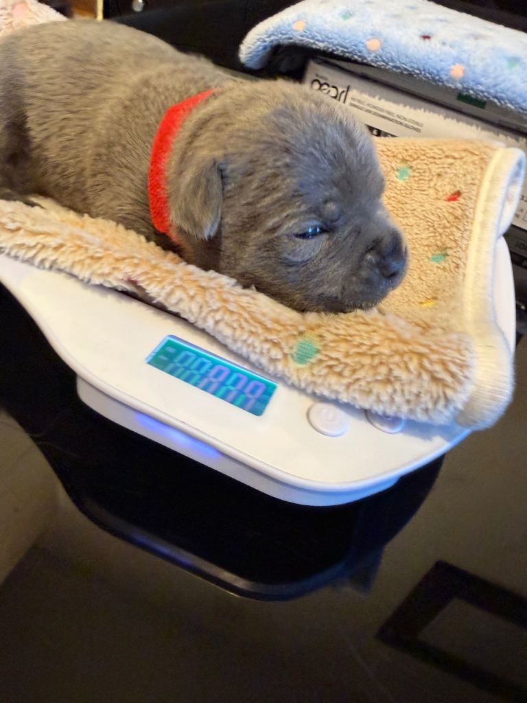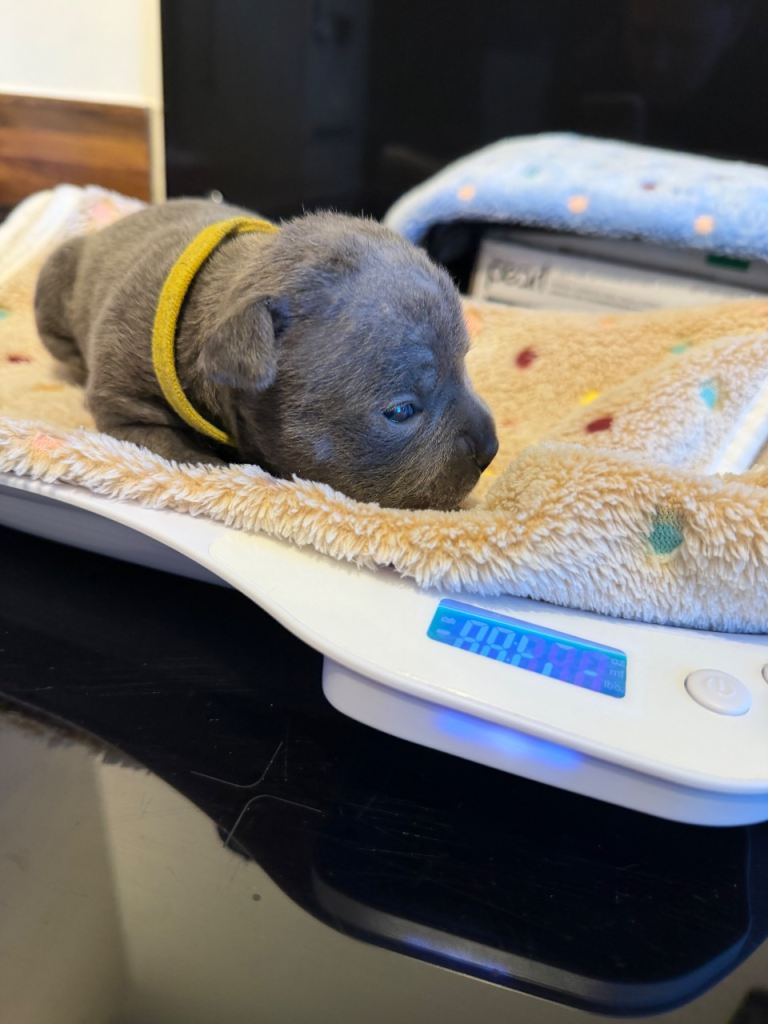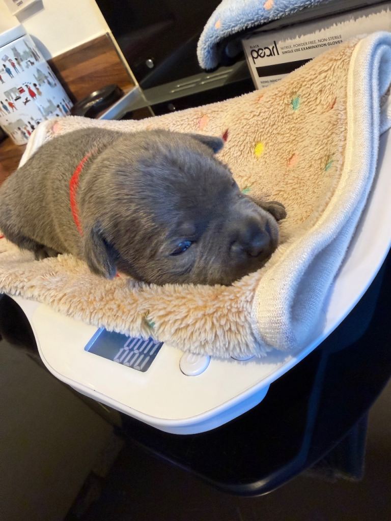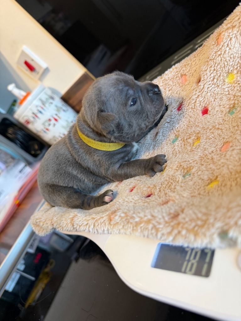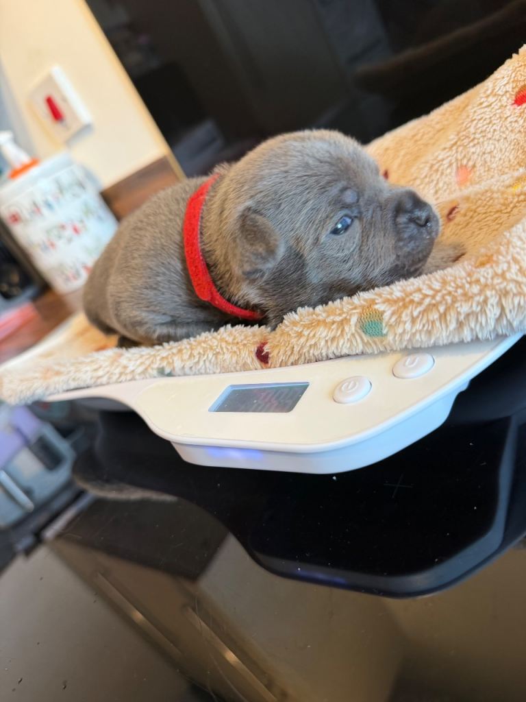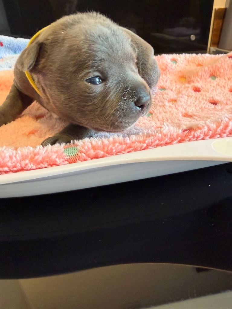 We have a beautiful litter of blue Staffordshire bull terrier puppies. 2 girls available.