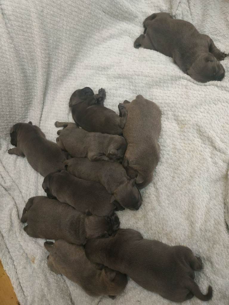 Litter of 10 healthy Blue and Blue & White patch pups.