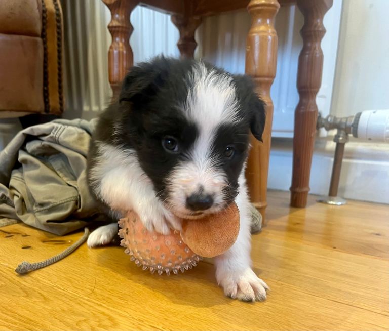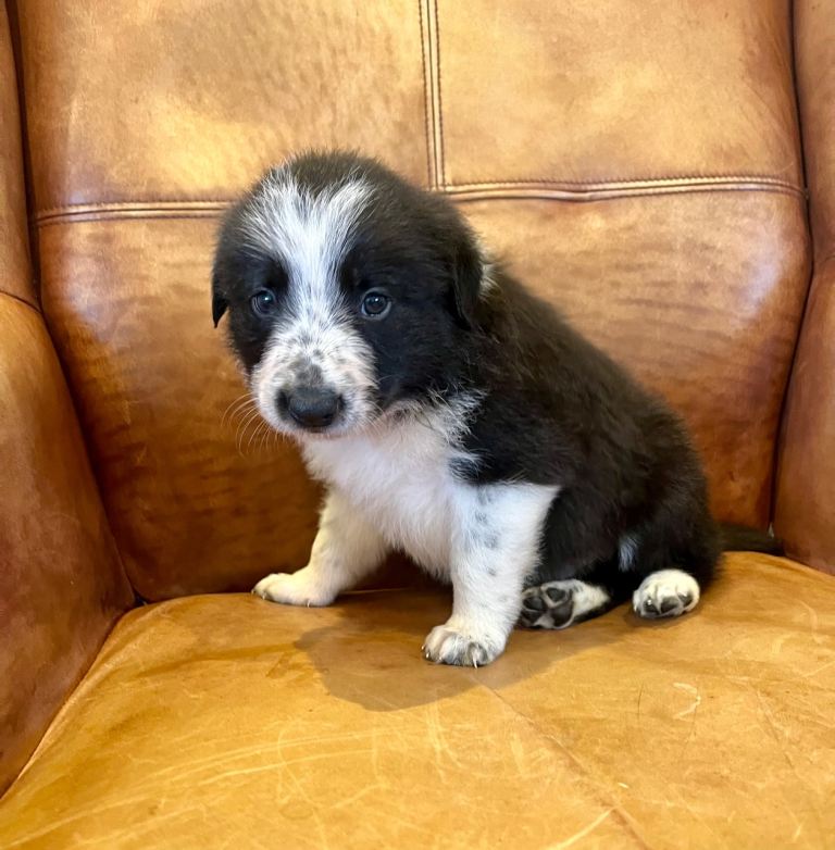 Beautiful litter of Border Collie pups, born 11/02/26. We have 4 black and white boys available.