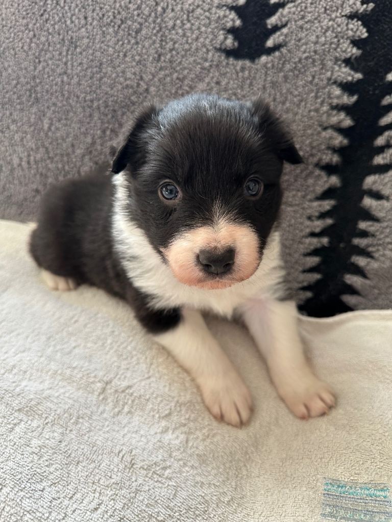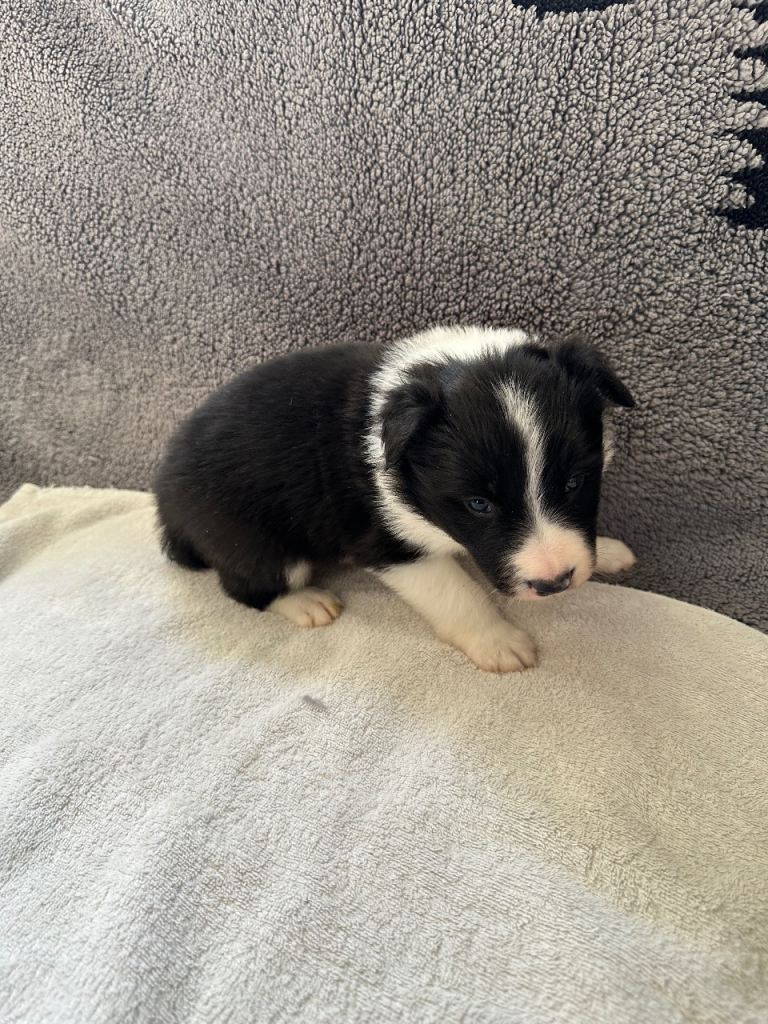 Beautiful traditional black and white medium to long hair border collie puppies for sale first and only litter to Cassie (ISDS) and Cruz (KC) farm family pets. ( last photos)