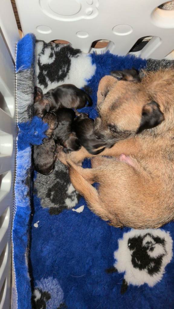 Both parents are Kennel Club registered. Mum (Border Terrier) is our much-loved family pet with a wonderful, loving temperament. She is fantastic around children and other dogs and is hereditary SLEM clear. Dad is a stunning phantom-colour Toy Poodle, owned by a close friend, and is fully health tested with an excellent temperament.