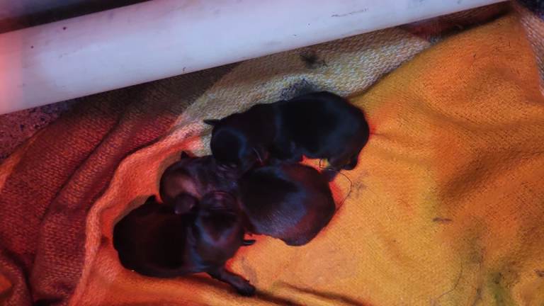 2 little girls, one red grizzle, one blue waiting for a new home. Available 26th April when they will be eight weeks old and will have been chipped and had their first injection