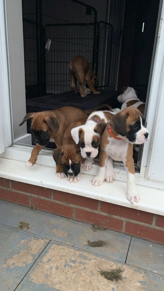 Here we have some wonderful full breed boxer puppies! Well looked after, sociable and looking for forever homes. 1st vaccination and health check completed 19/02/2026, microchipped wormed and flea treatment. One bitch left from litter of 6.