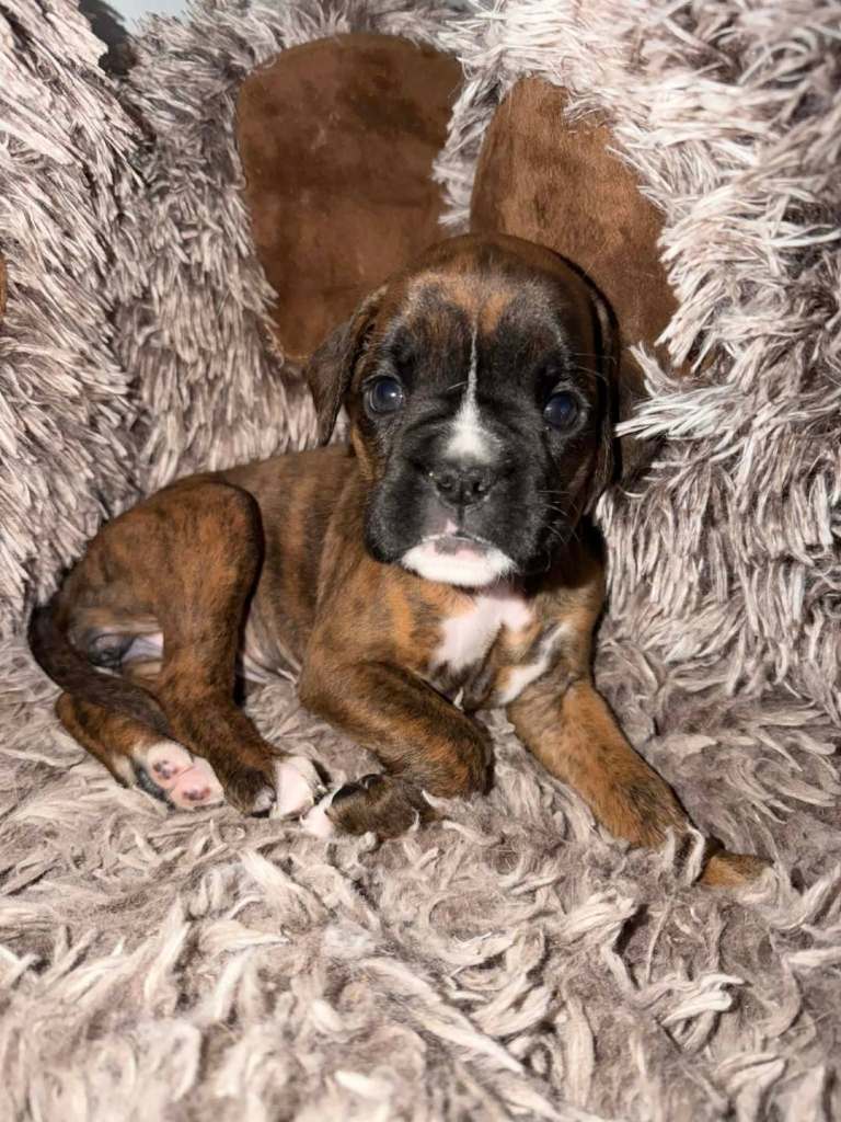 BACK UP FOR SALE DUE TO TIMEWASTERS!! We have this gorgeous brindle girl available from a litter of pedigree boxer puppies, she is ready to leave on the 18th March, will be microchipped, flead, wormed and come with a blanket with mams scent on, £100 non refundable deposit will secure your new puppy, happy to answer any questions, viewings welcome!! Please only message if you are able to look after her and give her a good life thankyou