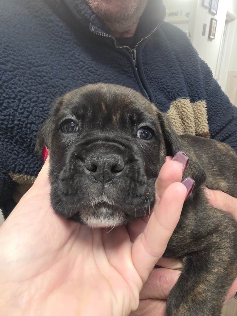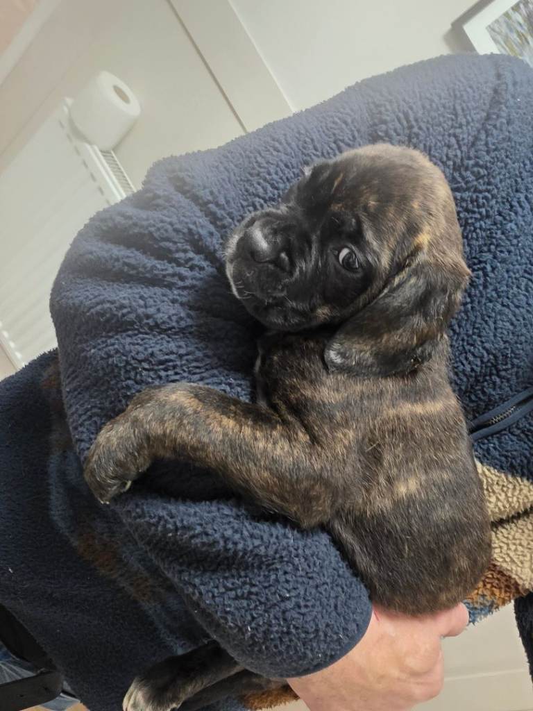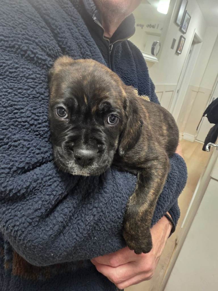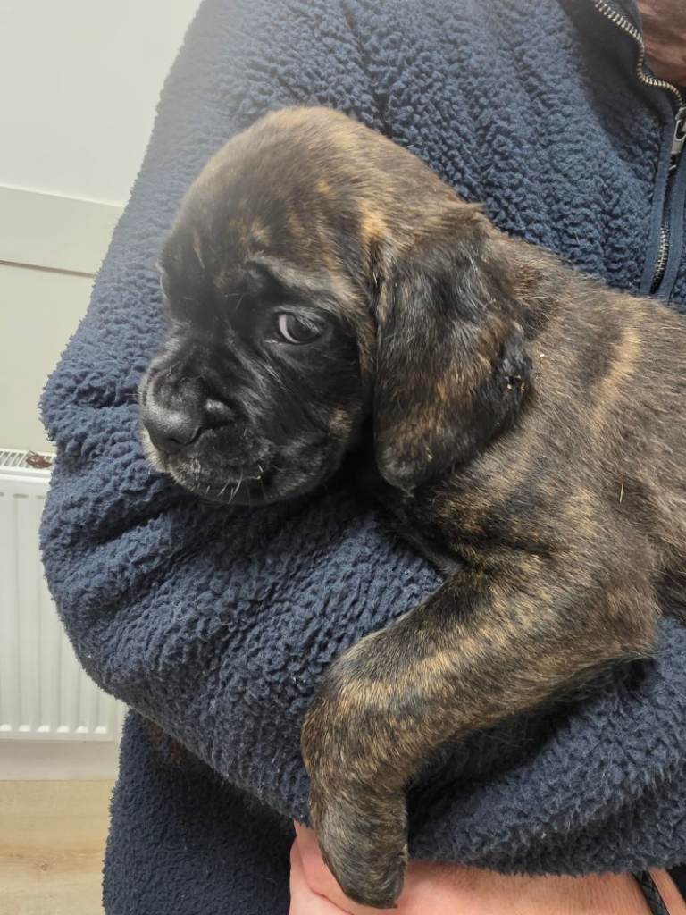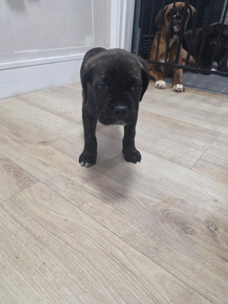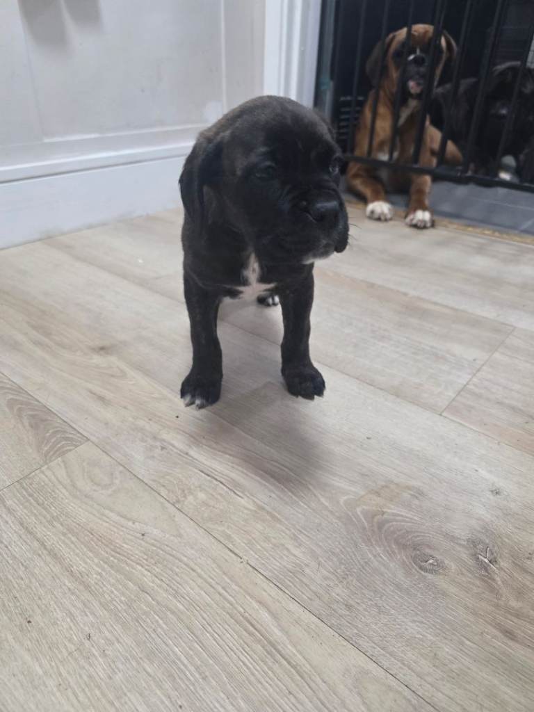 Mum is a pedigree KC registered Boxer and dad is a pure bread Cane Corso, both dogs are my family pets. The puppies are chunky, healthy and full of fun. All pups have been treated for fleas and wormed up to date and ready to go to their new homes now. They are currently 8 weeks old and were born on Nov 18th. Viewing welcome anytime, please call x0x7x3x9x2x5x4x2284