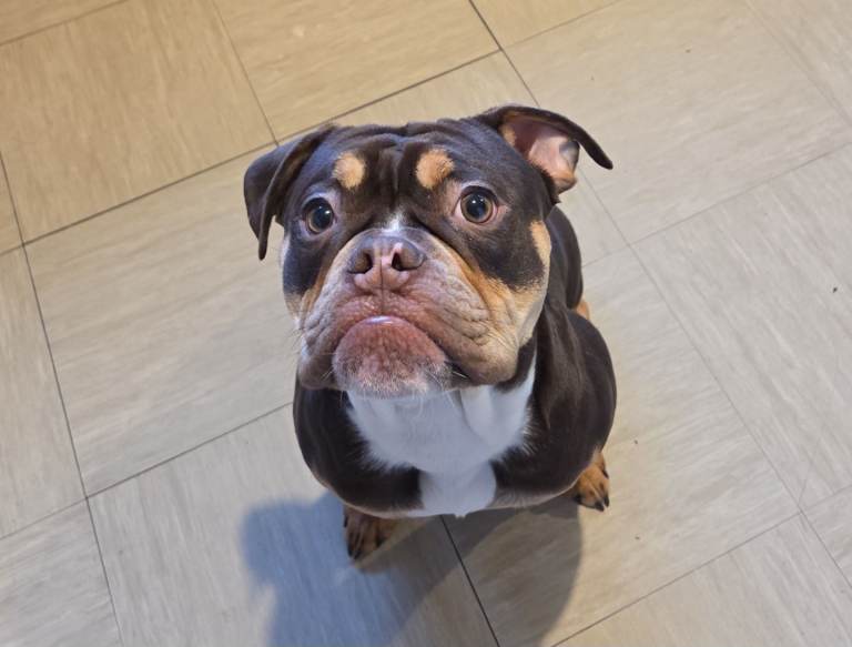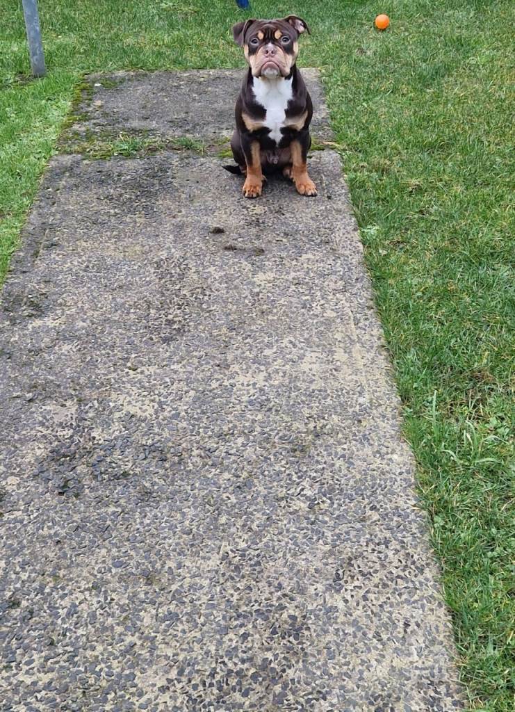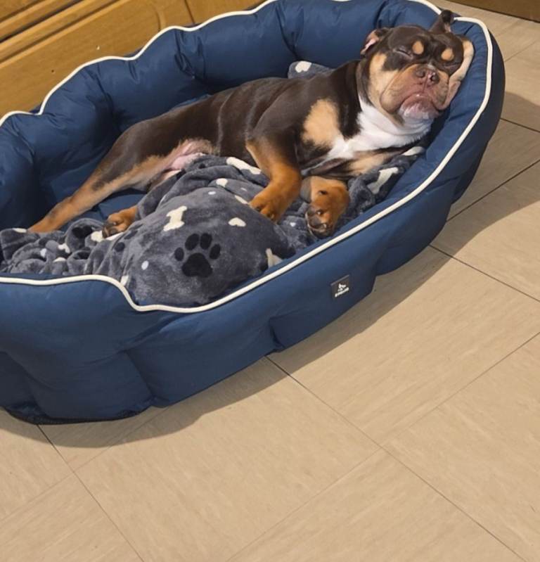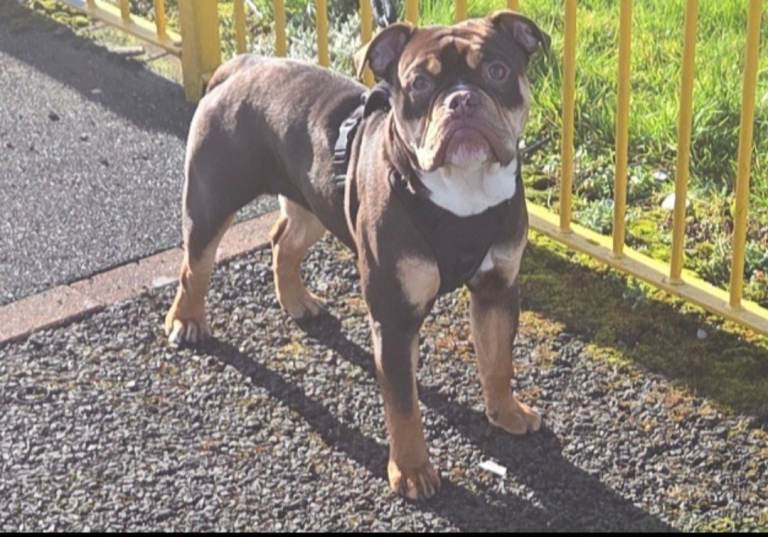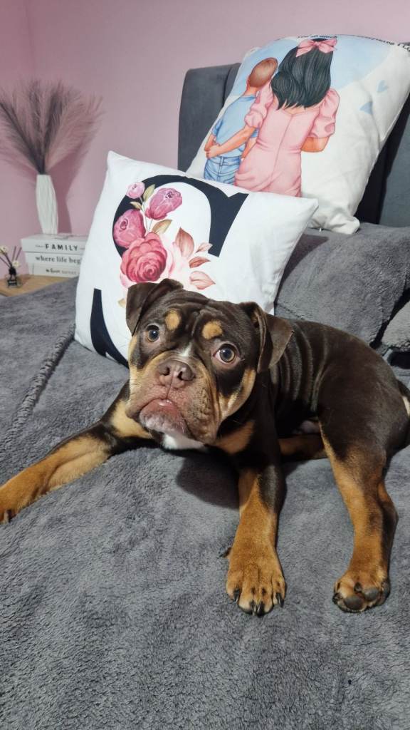Due to unforeseen circumstances im looking for a 5* home for my gorgeous olde english bulldog. He's the most loving dog , loves his cuddles hes a great sofa buddy. He's great at walking on the lead. Loves playing ball. He's fully vaccinated, microchipped wormed and flead up to date. He's comes with his papers. Comes with everything he needs, crate, bed food , lead , harness bowls. Anymore question give me a shout.