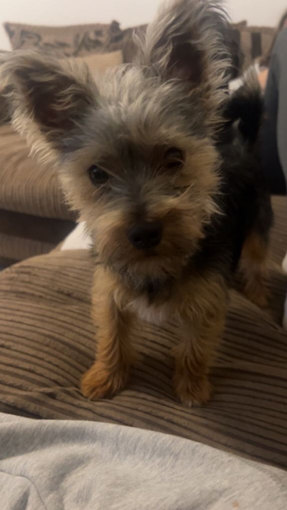 Yorkie 1 year old, his name is bubble he’s a very loving and warm dog, very playful, scared of new people but gets used to them with time, loves to play and go outside.