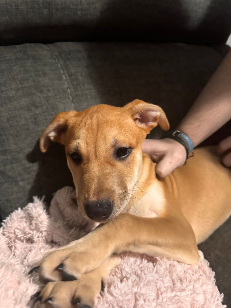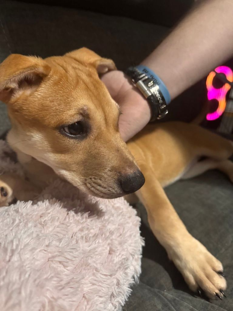 She has a strong drive and will need stimulation mentally and physically but you will have a life long companion. She’s a gentle soul, and cute as a button! Microchipped but needs her jabs.