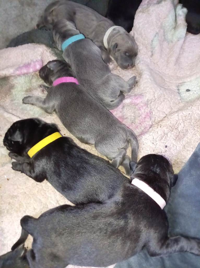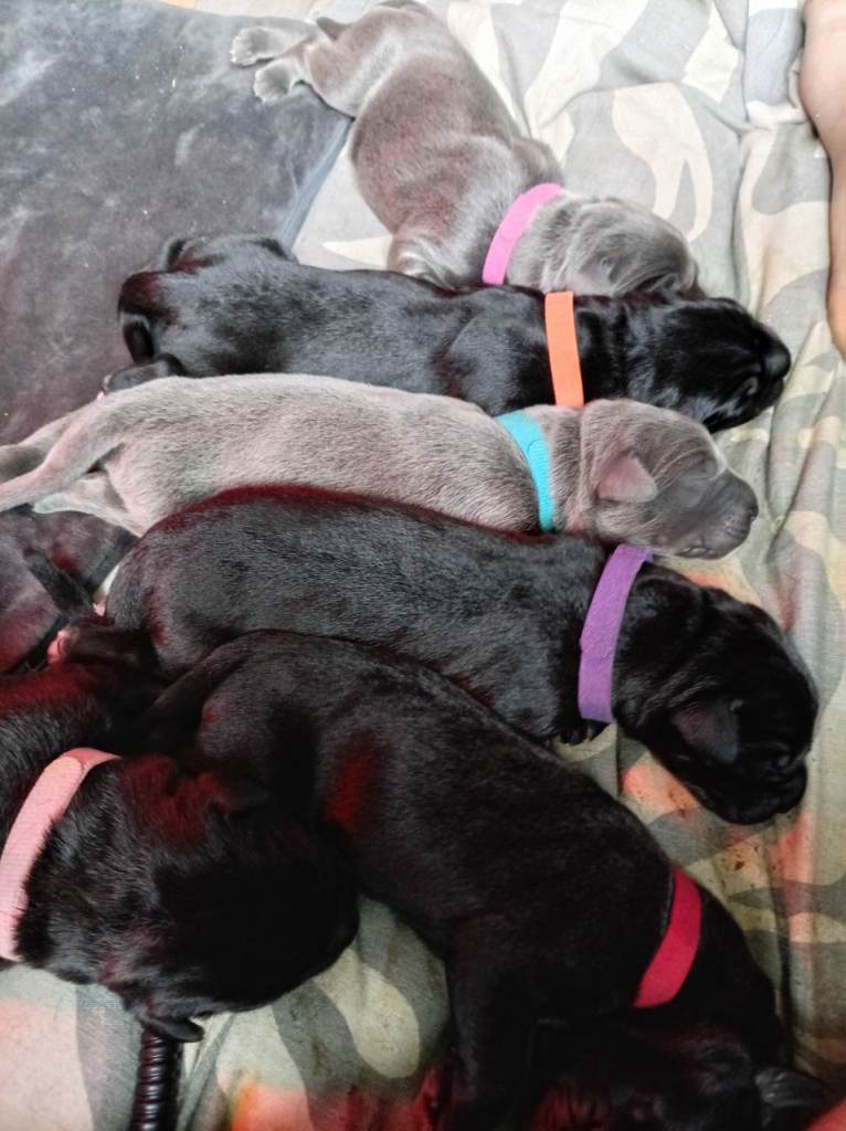 Hello I have 6 puppies left not ready to leave until 3nd June the mother is cane Corso cross Belgian Malinois and the father is pure cane Corso both the dogs are mine and been raised up with my 3 kids from new born to toddler never shown any aggression at all this is the first and last litter, You can come view the puppies and mum and dad. They are 5 days old born 8th April smallest is 787g biggest is 957g date of weight is 13/04/26 there is a non refundable £100 deposit the available puppies are