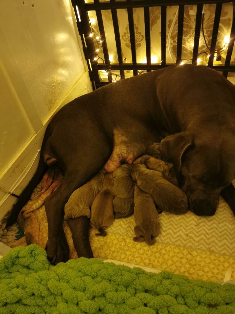 We have 6 beautiful girls and 1 handsome boy left. Mum is here with them so can be seen. These are the loveliest pups very very socialised happy to be around anyone. Amazing temprement. Mum and dad both corso. They will be fully vet checked and chipped b4 they leave. They are in a family home and used to lots of noises and people. We r very aware that these babies need socialising so they have been. Kids cats hoover ect not a problem. They can leave on Thursday 5th Feb and not before as they will be 8 weeks. If u wish for any more details please ask. We r in Hove