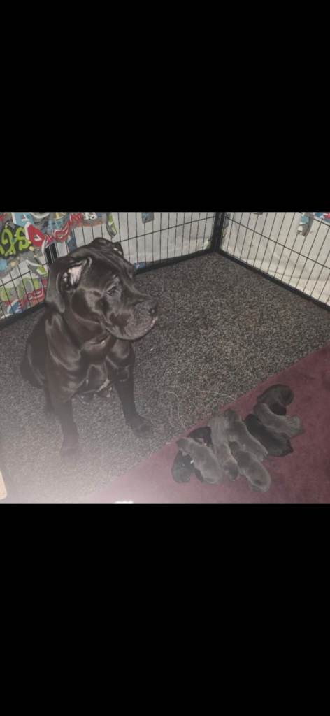 I have 8 cane corso pups 3 blue males 2 blue females and 3 black females 1 blue female and 1 blue male have already had deposits paid so their is 6 avaliable the mother can be seen with the pups the first pic is the mother they will be ready to leave on new years eve